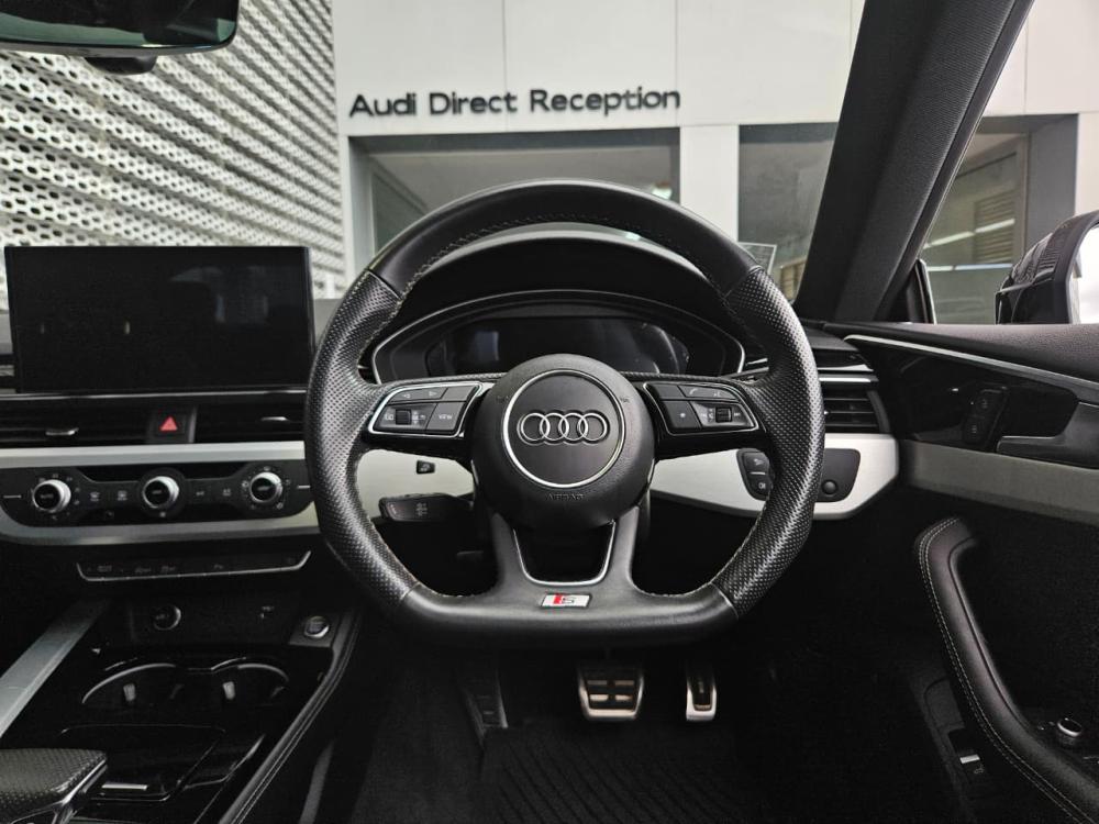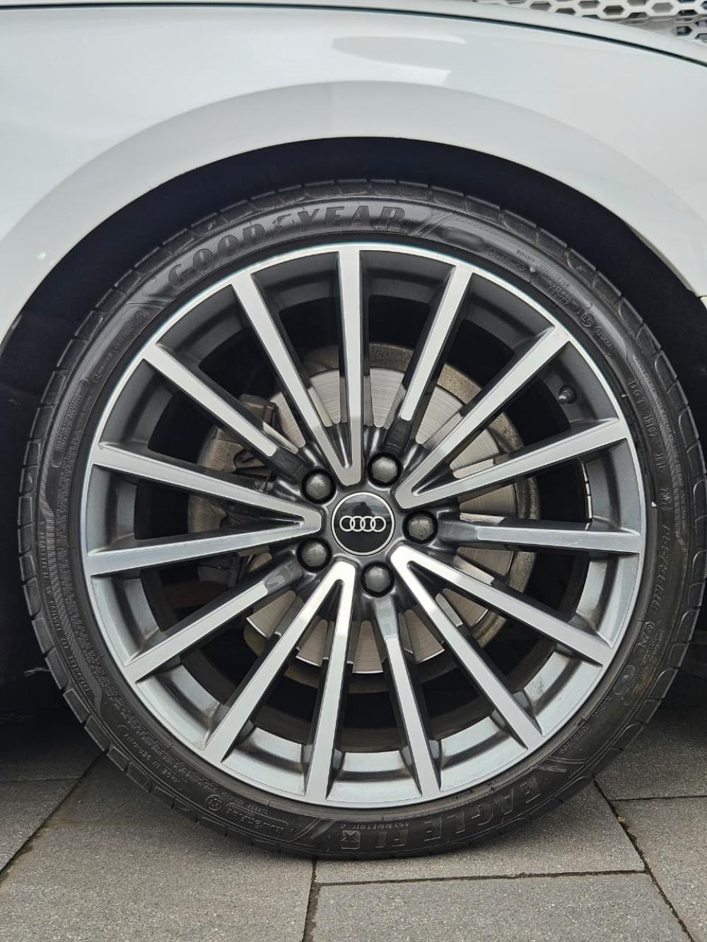 R679 990 R14 657 pmiSport contour leather steering wheel, 3-spoke,Elimination of model designation,Panoramic glass sunroof,Rear seat system - 3 seats,Black Styling package plus,Inlays, Matt Brushed Aluminum,Exterior mirror housings in Black,Interior elements in leatherette,Audi phone box, LTE support for Audi phone box,Rear view camera system,Fine Nappa leather with S embossing,Matrix LED headlights with Audi laser lights,19" wheels, multi-spoke,Graphite Gray,Interior S line,Sport package for South Africa