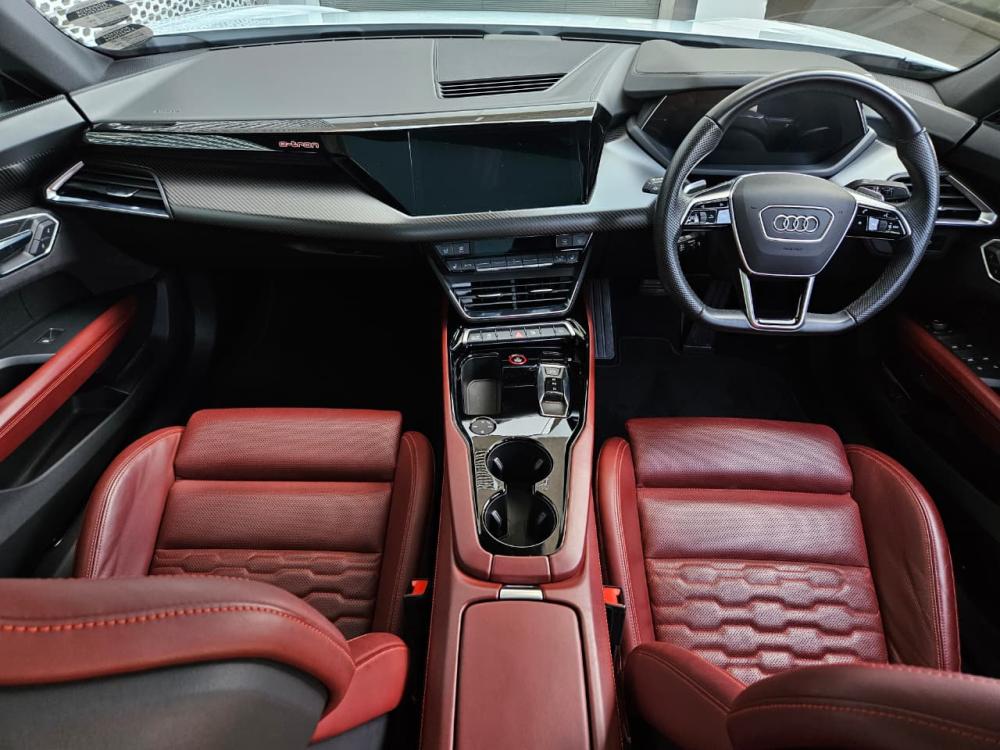R1 499 990 R32 331 pmiPlan extended to 27\10\2029 adaptive air suspension,Wheels, 5-spoke aero module, Black,Seat ventilation and massage function,Black Styling package Plus,Inlays, Carbon Twill, Silk Matt,Exterior mirror housings in Black,Singleframe in Glossy Black,Upper/lower inlays in leather/Dinamica,Illumin. Aluminium scuff plates front+rer,Bang + Olufsen 3D Premium Sound System,Head-up display,Leather combination, perforated with honycombe,Tungsten carbide coating w/ Red calipers,Surround view cameras,Matrix LED headlights with Audi laser lights,Sport seats pro, front