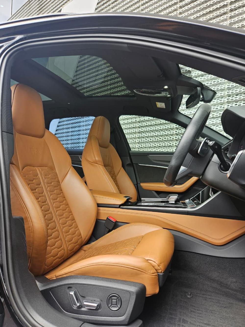 R1 949 990 R42 031 pmiSeat heaters in front and rear,Audi pre sense rear package,Black Styling package Plus,22" wheels, 5-V-spoke, Glossy,Decorative inserts in Carbon,Exterior mirrors in Body colour,Audi pre sense front,Upper/lower interior elements,Audi virtual cockpit plus RS L,Night vision assistant,Servo closing doors,RS Dynamic package,Glossy Black Appearance package,RS ceramic brakes Glossy Blue,Lane change assist incl. pre sense,Park Assist package with park