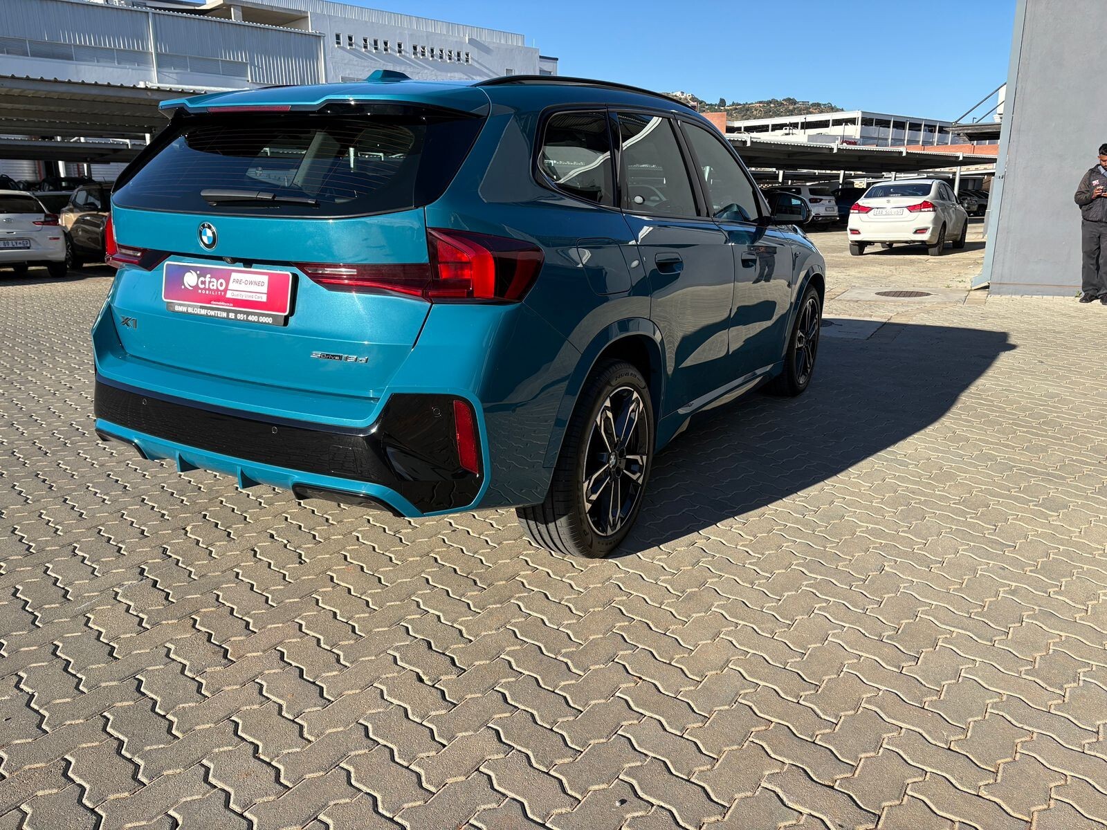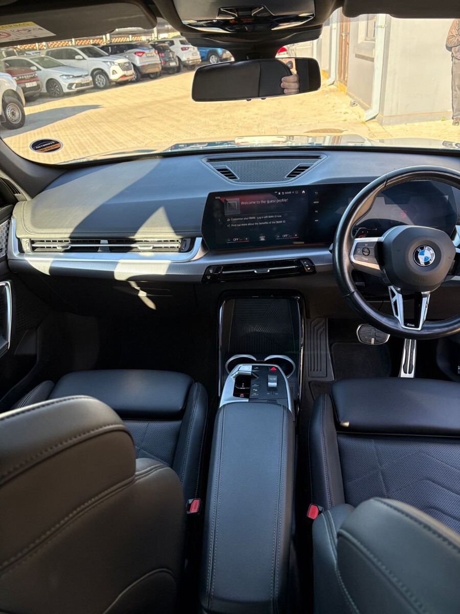 R699 900 R15 086 pmiExterior Styling: M Aerodynamic body kit with sporty bumpers, sculpted side skirts, and gloss black (Shadowline) exterior trim., Wheels: Standard 18-inch M light alloy wheels (Double-spoke 838M), with options for 19 or 20-inch designs., Suspension: Adaptive M Suspension for improved handling and ride comfort., Badging: M Sport badges on the front flanks and door sills., BMW Curved Display: A seamless integration of a 10.25-inch digital cluster and a 10.7-inch infotainment touchscreen running iDrive 8., Seating: M Sport seats typically trimmed in a combination of Alcantara and leather (or perforated Veganza) with enhanced side bolsters., Connectivity: Wireless Apple CarPlay and Android Auto integration and a wireless charging tray., Comfort: Dual-zone automatic climate control, ambient lighting, and a leather-wrapped M multi-function steering wheel., Lighting: LED headlights and LED daytime running lights come standard, with Adaptive LED headlights available as an option., Parking Aids: Park Distance Control (PDC) front and rear, plus a high-definition rearview camera., Driving Support: Cruise control with braking function, lane departure warning, and front collision assist., Protection: Equipped with 6 standard airbags and ISOFIX child seat mountings.,