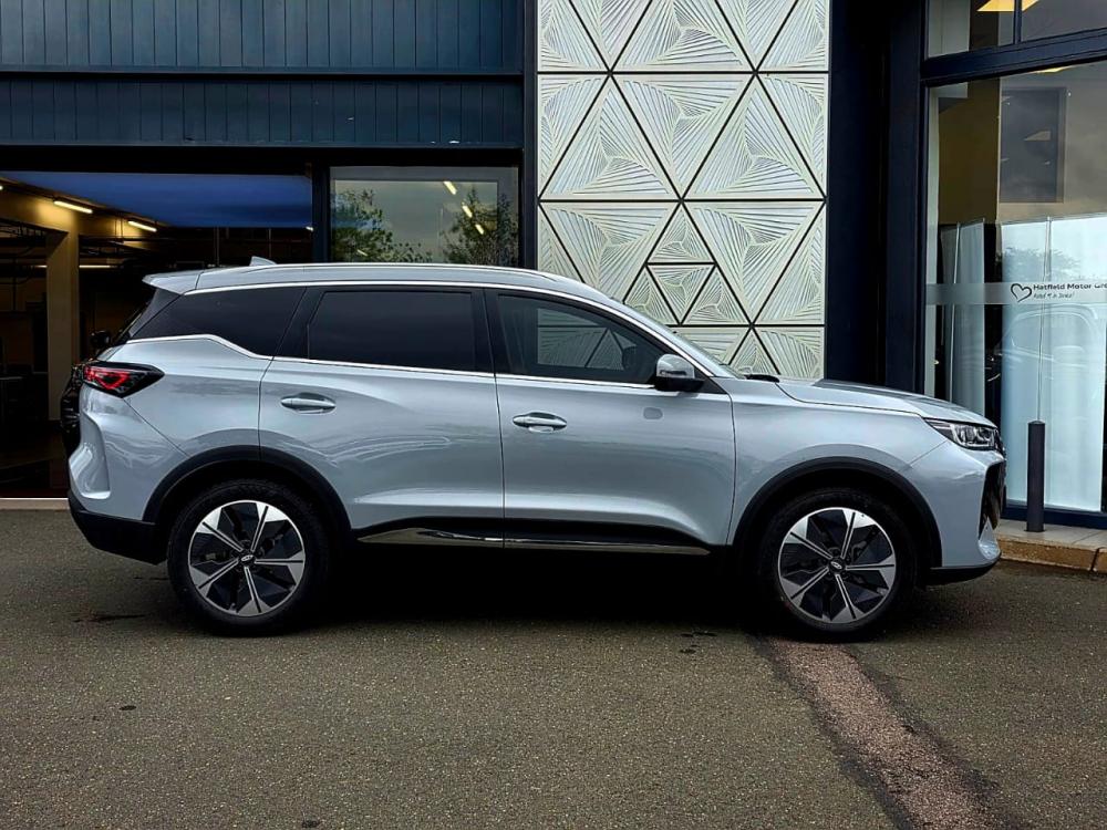 R499 900 R10 775 pmiKey Specifications Engine: 1.6-litre Turbocharged Gasoline Direct Injection (TGDI). Performance: Delivers 147 kW of power and 290 Nm of torque. Fuel Consumption: Claimed average of 7.2 L/100km. Drivetrain: Front-wheel drive with a 7-speed Dual-Clutch Transmission. Dimensions: Length of 4,553 mm and a wheelbase of 2,670 mm. Interior & Technology The Prestige trim focuses on a premium cabin experience with high-tech driver aids: Displays: Dual 12.3-inch LCD screens for the instrument cluster and infotainment, featuring Apple CarPlay and Android Auto. Upholstery: Black artificial leather seats with a 6-way electrically adjustable driver's seat. Visibility: Equipped with a 540° camera system (360° view plus a transparent chassis view) for parking and off-road confidence. Convenience: Includes a panoramic sunroof, dual-zone automatic air conditioning, and wireless charging. Warranty: Chery offers a 10-year/1 million km engine warranty (standard for the first owner), a 5-year/150,000 km general warranty, and a 5-year/60,000 km service plan.