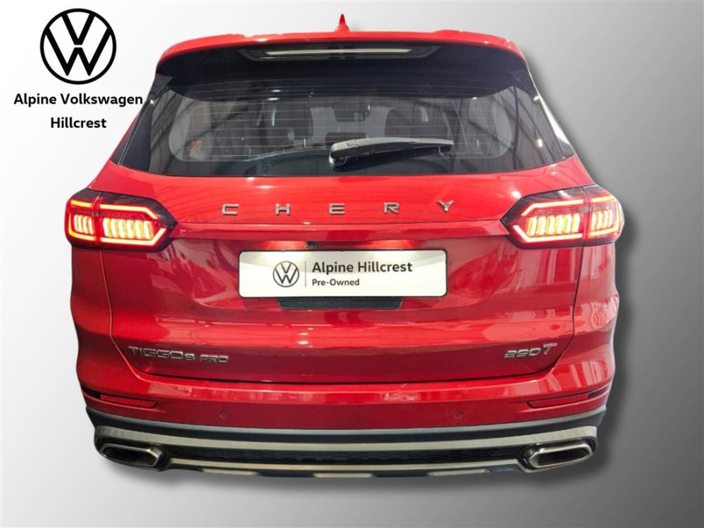 R349 990 R7 544 pmiRef: 250886/1 Experience sophistication, performance, and space in the 2022 Chery Tiggo 8 Pro 1.6TGDi Distinction — a modern 7-seater SUV built for families who want style and substance. Powered by a 1.6-litre turbocharged petrol engine delivering an impressive 145 kW and 290 Nm, paired with a smooth 7-speed dual-clutch transmission (7DCT), the Tiggo 8 Pro offers responsive performance with refined efficiency — averaging around 7.0 L/100 km combined. Whether you’re cruising on the highway or navigating city streets, it delivers confident, quiet driving comfort. Inside, the Distinction trim surrounds you with premium finishes and advanced technology. Standard features include dual-zone climate control, a full-colour digital instrument cluster, a large infotainment touchscreen with Bluetooth and smartphone integration, multi-function steering wheel, keyless entry and push-start, and synthetic-leather upholstery for all seven seats. A 360° camera system and comprehensive suite of safety features — including multiple airbags, ABS, EBD, stability control and rear parking sensors — ensure peace of mind on every journey. Enjoy the balance of the manufacturer’s warranty for added confidence and value. Visit Alpine VW Hillcrest today to view and test-drive this exceptional Tiggo 8 Pro. Experience premium comfort, outstanding performance, and incredible value first-hand — contact our team to book your appointment.