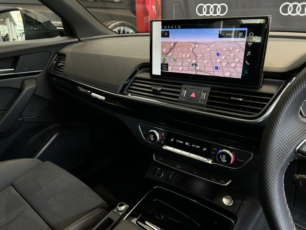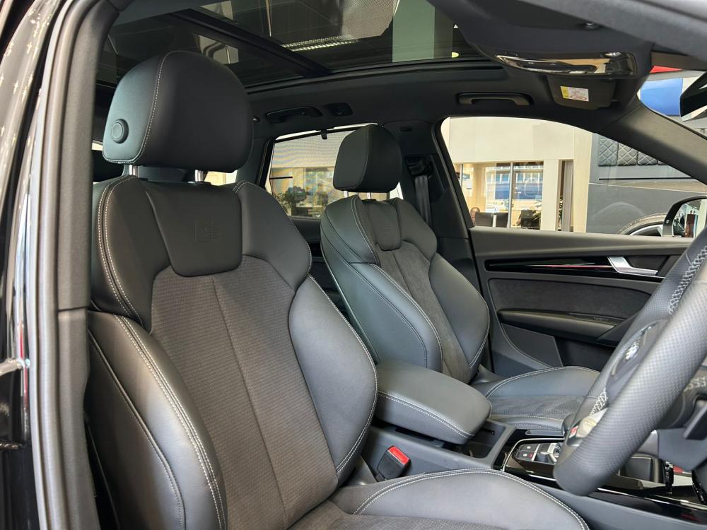 R1 157 950 R24 959 pmi- Tiptronic - Sport suspension - Trailer hitch - Wheel bolts, anti-theft quattro - Axial and vertical adjustable steering column - Audi drive select - Loading sill protector, stainless steel - Sport contour leather steering wheel, 3-spoke, flat bottom with multifunction plus - ISOFIX child seat mounting and top tether for the outer rear seats - Collapsible spare tire - Panoramic glass roof - ISOFIX child seat mounting for the front passenger seat - Front seats, electrically adjustable with memory function for the driver seat - Split-folding rear seat backrest - Luggage compartment cover - Sunshade, manual for the door windows, rear - Luggage compartment lid, electrically opening and closing - Convenience key, with Safelock - Windshield with heat-reflecting glass and acoustic glass - Child-proof lock, electrically operated - Rear and side windows with heat-insulating glazing - Interior mirror, automatically dimming, frameless - Beverage holders - Airbags, front; front passenger airbag can be deactivated - Side airbags, front and head airbag system - Black Styling package plus - Roof spoiler - Inlays, piano finish Black, Audi exclusive - Head restraints, front - Comfort center armrest, front - Exterior mirrors, electrically adjustable, heated and folding, automatic. dimming, with memory function - Tire pressure loss indicator - 4-way lumbar support for the front seats - MMI navigation plus with MMI touch - Audi pre sense rear - Parking system plus Side assist - Matrix LED headlights with dynamic light sequencing and dynamic turn signal