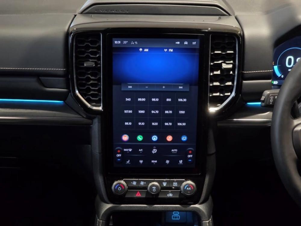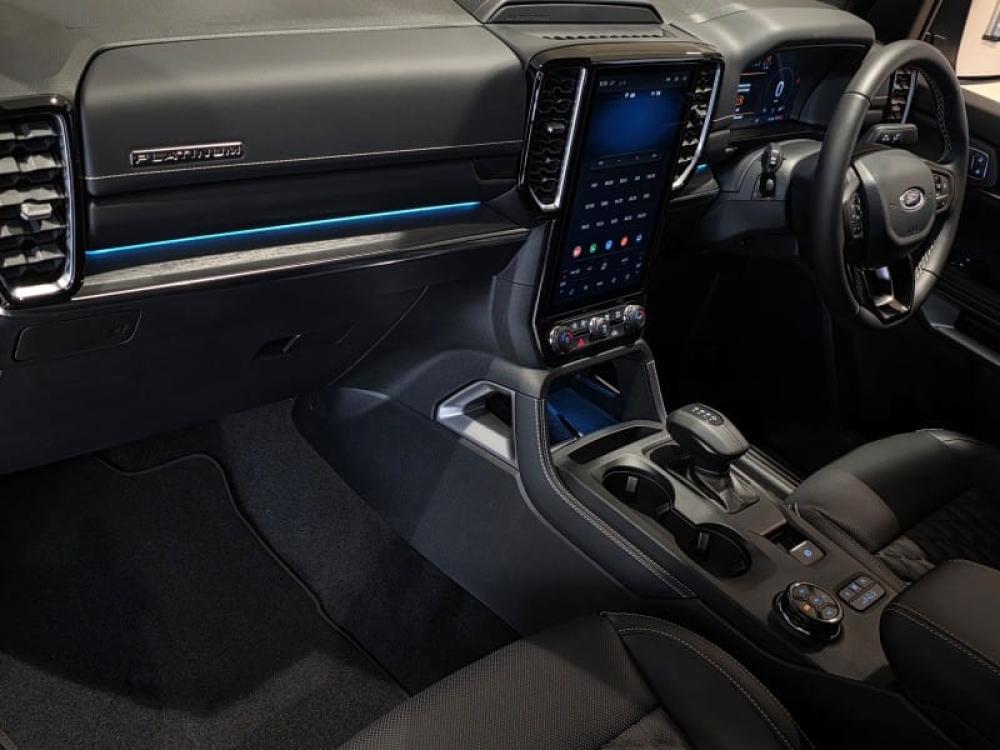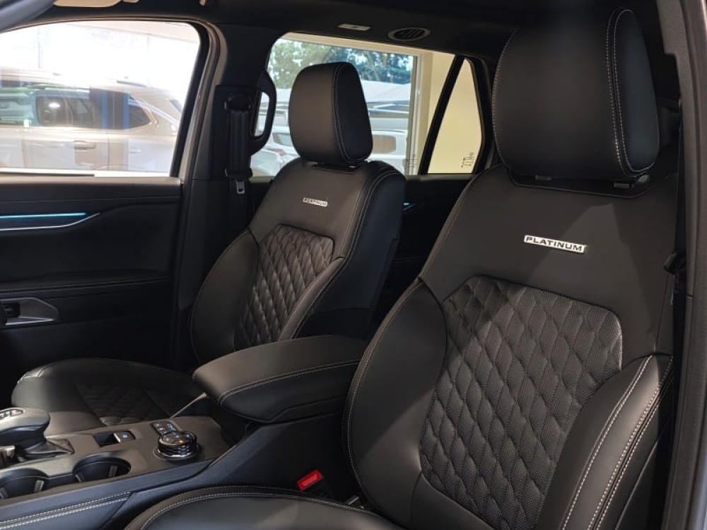 R1 310 331 R28 243 pmi3.0V6 Turbo Diesel, 184 kw & 600 Nm, 10 Speed automatic, e-Shifter, Electronic park Brake, Panoramic Sunroof, Full time 4WD With Terrain management system, 21” Alloys, 8-inch Digital instrument cluster, Electronic Dual Zone Auto Air conditioning / Climate Control, Smart Keyless Entry with Push Button Start, 12-inch LED portrait screen with SYNC 4A, Wireless Apple CarPlay™ ® & Android Auto™ , Wireless Charging, Heated and vented premium leather with 10-way power memory. Unique ‘Platinum’ badging, Front seats heated & cooled, Apple car play & Android auto, 360 deg camera, Adaptive cruise control