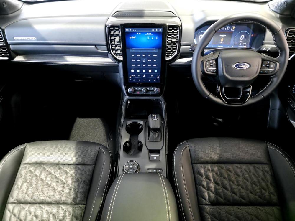 R1 310 331 R28 243 pmi3.0V6 Turbo Diesel, 184 kw & 600 Nm, 10 Speed automatic, e-Shifter, Electronic park Brake, Panoramic Sunroof, Full time 4WD With Terrain management system, 21” Alloys, 8-inch Digital instrument cluster, Electronic Dual Zone Auto Air conditioning / Climate Control, Smart Keyless Entry with Push Button Start, 12-inch LED portrait screen with SYNC 4A, Wireless Apple CarPlay™ ® & Android Auto™ , Wireless Charging, Heated and vented premium leather with 10-way power memory. Unique ‘Platinum’ badging, Front seats heated & cooled, Apple car play & Android auto, 360 deg camera, Adaptive cruise control