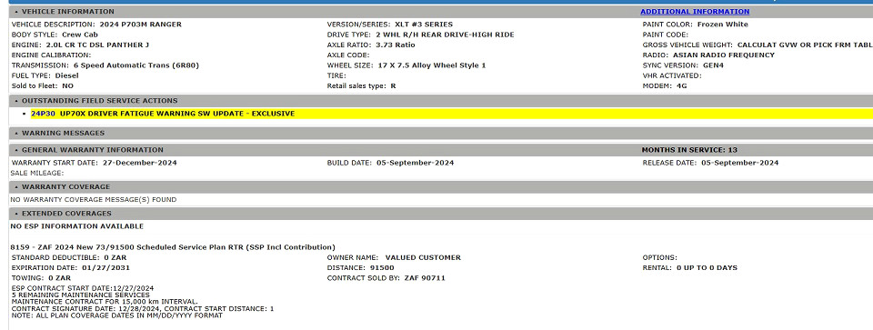 R599 950 R12 932 pmiStandard factory specifications - ABS, Auto Windscreen Wipers, Air bags 7, Auto lights, Auto lock, ISO fix, Brake hazard lights, Power steering, Steering adjustment, Seats 5, Electric mirror fold, Spare wheel FULLSIZE, Keyless entry, Air conditioner, Electric windows, Radio, Remote side mirrors, Park distance - rear, Alloy wheels, Fuel DIESEL, Engine LONGITUDINAL INLINE 4, Engine size 1996cc, CO2 197g/Km, Power 125kW@3500, Torque 405Nm@1750, DOHC, 4 VALVES PER CYLINDER, Gears 6, Drive REAR, Boot capacity 0 litres, Average fuel consumption 7.5l/100km, Service interval 15000km