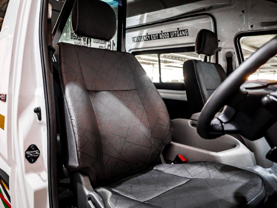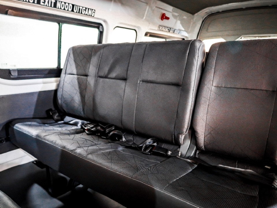 R499 900 R10 775 pmiStandard factory specifications - ABS, Electronic brakeforce distribution, Air bags 1, Brake hazard lights, Power steering, Steering adjustment, Seats 15, Spare wheel X, Keyless entry, Air conditioner, Electric windows, Radio, Remote side mirrors, Alloy wheels, Fuel DIESEL, Engine TRANSVERSE INLINE 4, Engine size 2780cc, CO2 0g/Km, Power 96kW@3600, Torque 280Nm@1400, DOHC, 4 VALVES PER CYLINDER, Gears 5, Drive FRONT, Boot capacity 0 litres, Average fuel consumption 8.9l/100km, Service interval 15000km