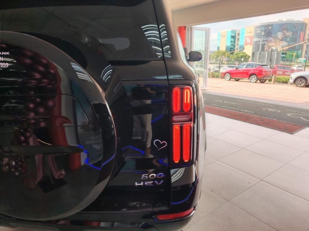 R1 228 950 R26 489 pmiThe GWM Tank 500 is a large 7-seat hybrid SUV powered by a 2.0 litre turbo petrol engine paired with a hybrid system that delivers around 255 kW of power and 648 Nm of torque through a smooth 9-speed hybrid automatic and full-time 4WD, giving strong performance for towing and off-road ability. It can accelerate in roughly 8.3 seconds, has a towing capacity of about 2.5 tonnes and combined fuel use around 8.5 L/100 km. Measuring about 5,078 mm long with generous ground clearance, it blends rugged capability with spacious comfort inside. The interior is tech-rich with features like a large infotainment screen, digital cluster and panoramic sunroof, backed by modern safety aids such as 360° cameras and adaptive systems, making it a versatile, premium SUV for on- and off-road driving.