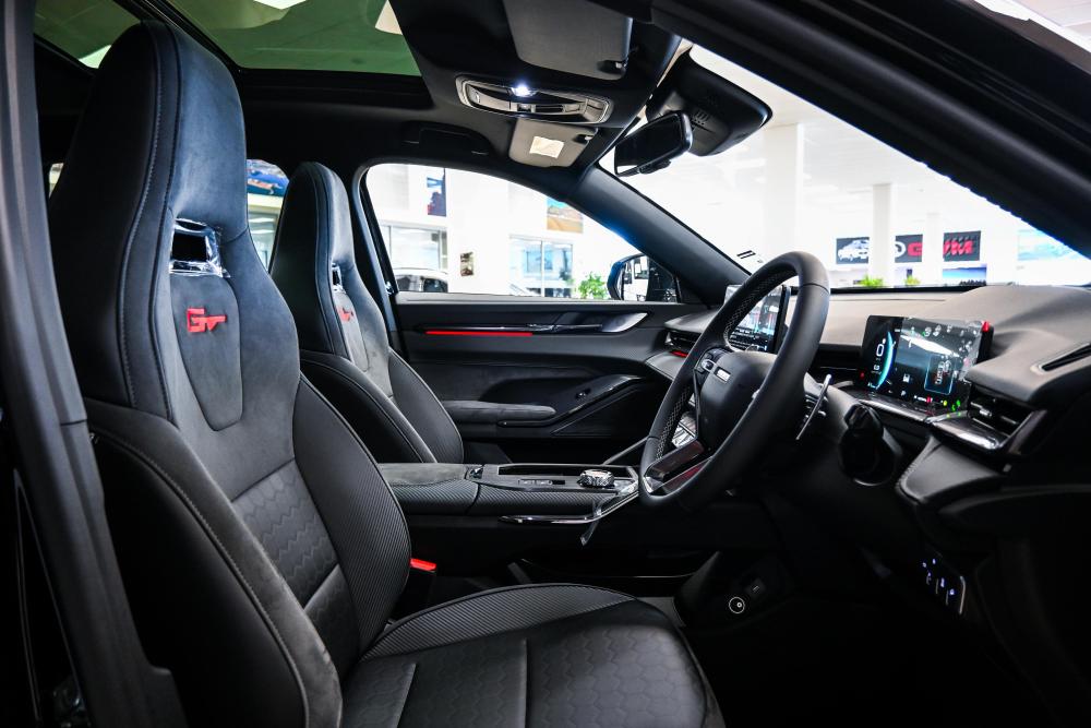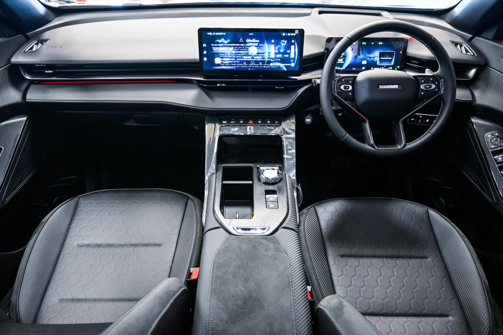 R665 950 R14 354 pmiDrivetrain Price R665950 Engine Type 2.0 Turbo Transmission 7DCT Drivetrain 4WD Maximum Power (kW@rpm) 155/6000-6300 Maximum Torque (Nm@rpm) 325/1500-4000 Fuel Type Petrol Wheels & Brakes Wheel size front 235/55 R19 Wheel size rear 235/55 R19 Front suspension type MacPherson Suspension Rear suspension type Multi-Link Suspension Exterior Auto Lift Tailgate Yes Panoramic Sunroof Yes Gloss Black Roof Rails Yes Gloss Black Exterior Mirrors Yes Front Bumper & Rear Tailgate: Gloss Black with Carbon Fibre Visual Accents(Yes) Aerodynamic Kit: Dual Rear Spoilers, Aero Side Skirts & Sporty Rear Diffuser(Yes) Electronic Anti-Glare Inside Mirror Yes Automatic Headlights + Follow Me Home Yes Infotainment 12.3" Colour Multi-Touch Screen Yes Carplay® & Android Auto™ Yes Front & Rear Dual USB Ports Yes Bluetooth Connectivity Yes Number of Speakers 8 Speed Sensitive Volume Control Yes Interior Sporty Front & Rear Seats Yes Driver Seat 6-Way Electric Adjust Yes Passenger Seat 4-Way Electric Adjust Yes Synthetic Leather Steering Wheel Yes Head-Up Display Yes Paddle Shift Yes Rear Luggage 12V Power Outlet Yes Dashcam Power Outlet Yes Keyless Entry & Push Button Start Yes Safety 360 Degree Camera with Panoramic View Yes Airbags (Dual, Side & Curtain) 6 Rear Parking Sensors (4) Yes Electronic Stability System (ESC) Yes TCS (Traction Control System) Yes Anti-Roll System (RMI) Yes Secondary Collision Mitigation (SCM) Yes Cornering Brake Control (CBC) Yes Brake Assist (BA) Yes Tyre Pressure Monitoring System (TPMS) Yes Hill Descent (HDC) Yes Uphill Assist (HHC) Yes Adaptive Cruise Control (ACC) Yes Traffic Sign Recognition (TSR) Yes Lane Departure Warning (LDW) Yes