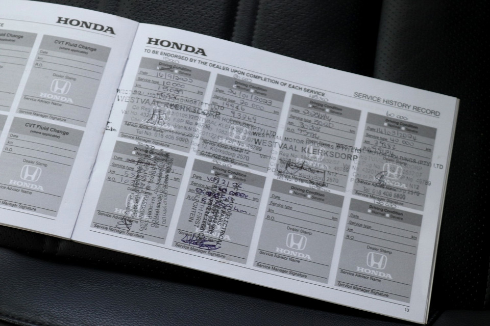 R439 950 R9 483 pmiStandard factory specifications - ABS, Electronic brakeforce distribution, Auto Windscreen Wipers, Air bags 6, Auto lights, Auto lock, Brake hazard lights, Power steering, Steering adjustment, Cruise control, Seats 5, Electric mirror fold, Spare wheel FULLSIZE, Keyless entry, Air conditioner, Climate control, Electric windows, Radio, Leather, Metallic, Park distance - rear, Alloy wheels, Fuel UNLEADED, Engine TRANSVERSE INLINE 4, Engine size 1498cc, CO2 159g/Km, Power 140kW@5600, Torque 240Nm@2000, SOHC 4 VALVES PER CYLINDER, I-VTEC, VARIABLE VALVE TIMING, Gears 5, Drive FRONT, Top speed 200Km/h, Boot capacity 522 litres, Average fuel consumption 6.7l/100km, Service interval 10000km