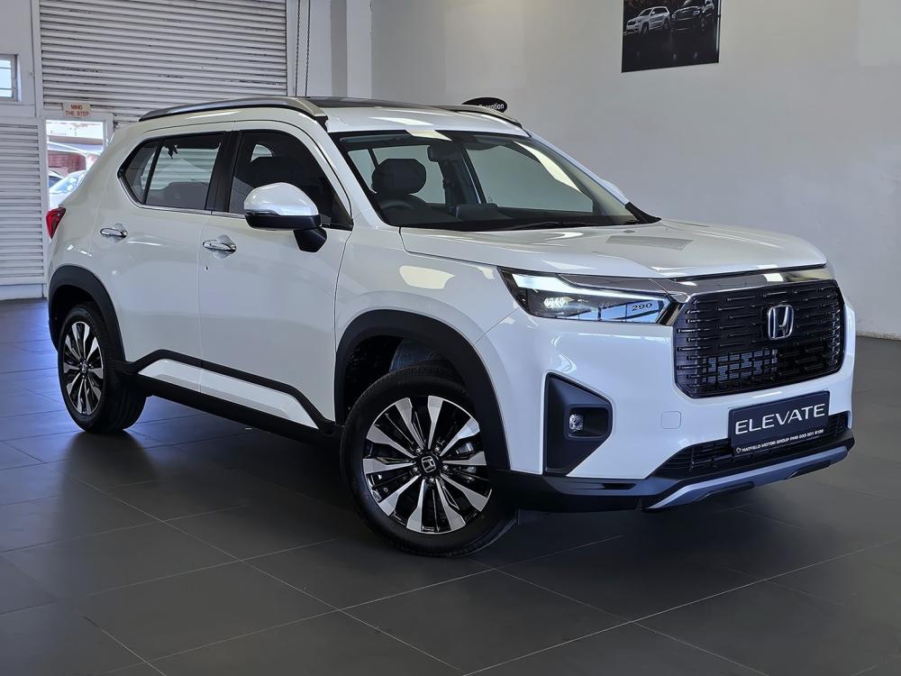 R430 799 R9 286 pmiEXTERIOR Bold and modern, the Honda Elevate stands tall with a 199 mm ground clearance, LED headlights and taillights, and strong character lines. The Elegance trim adds 17" diamond-cut alloys, LED fog lights and a sunroof for extra flair. Interior Spacious, stylish and smart, the Honda Elevate’s cabin features high-quality materials, ample legroom and a flat rear floor. Elegance models boast soft-touch panels, eco-friendly leather upholstery and a sunroof that adds light and airiness to every journey. Comfort Designed for everyday ease, the Honda Elevate offers generous boot space (458 L), supportive seating, smart keyless entry and automatic air conditioning. Rear passengers enjoy exceptional headroom and legroom, making long drives a pleasure for everyone. Safety Stay protected with 6 airbags, ABS, EBD, VSA and rear parking sensors. Built on Honda’s advanced ACE® body structure, which is intended to absorb and redirect crash energy for added protection, and a multi-angle rear camera for enhanced visibility while reversing, the Elevate is designed to prioritise safety from every angle. Technology Stay connected with an 8" touchscreen, Apple CarPlay®, Android Auto™, and Bluetooth®. All Elevate derivatives feature a 7" digital display as standard, while select variants add wireless charging, paddle shifters, and a 6-speaker sound system for an elevated drive that keeps you in control and in tune. Performance The Honda Elevate is powered by a 1.5L i-VTEC petrol engine with 89 kW of power and fuel efficiency of up to 6.1 L/100 km. Choose between a 6-speed manual (Comfort) or a smooth CVT (Elegance) for a balanced, confident drive through city streets and beyond.