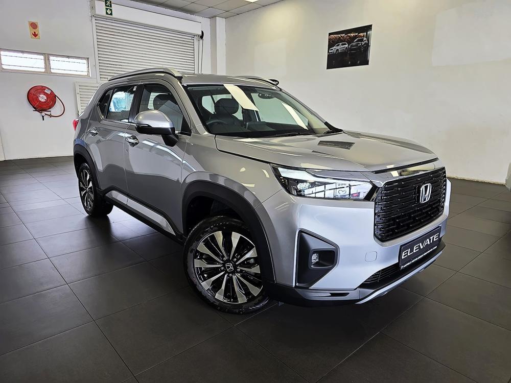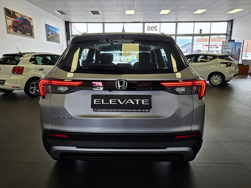 R430 800 R9 286 pmiEXTERIOR Bold and modern, the Honda Elevate stands tall with a 199 mm ground clearance, LED headlights and taillights, and strong character lines. The Elegance trim adds 17" diamond-cut alloys, LED fog lights and a sunroof for extra flair. Interior Spacious, stylish and smart, the Honda Elevate’s cabin features high-quality materials, ample legroom and a flat rear floor. Elegance models boast soft-touch panels, eco-friendly leather upholstery and a sunroof that adds light and airiness to every journey. Comfort Designed for everyday ease, the Honda Elevate offers generous boot space (458 L), supportive seating, smart keyless entry and automatic air conditioning. Rear passengers enjoy exceptional headroom and legroom, making long drives a pleasure for everyone. Safety Stay protected with 6 airbags, ABS, EBD, VSA and rear parking sensors. Built on Honda’s advanced ACE® body structure, which is intended to absorb and redirect crash energy for added protection, and a multi-angle rear camera for enhanced visibility while reversing, the Elevate is designed to prioritise safety from every angle. Technology Stay connected with an 8" touchscreen, Apple CarPlay®, Android Auto™, and Bluetooth®. All Elevate derivatives feature a 7" digital display as standard, while select variants add wireless charging, paddle shifters, and a 6-speaker sound system for an elevated drive that keeps you in control and in tune. Performance The Honda Elevate is powered by a 1.5L i-VTEC petrol engine with 89 kW of power and fuel efficiency of up to 6.1 L/100 km. Choose between a 6-speed manual (Comfort) or a smooth CVT (Elegance) for a balanced, confident drive through city streets and beyond.