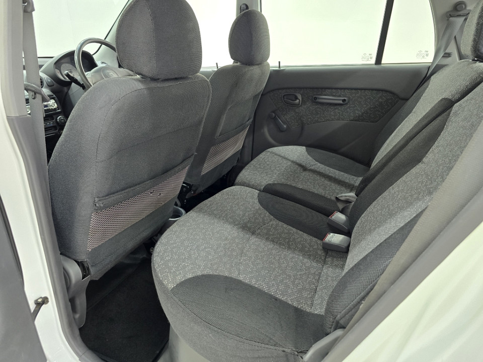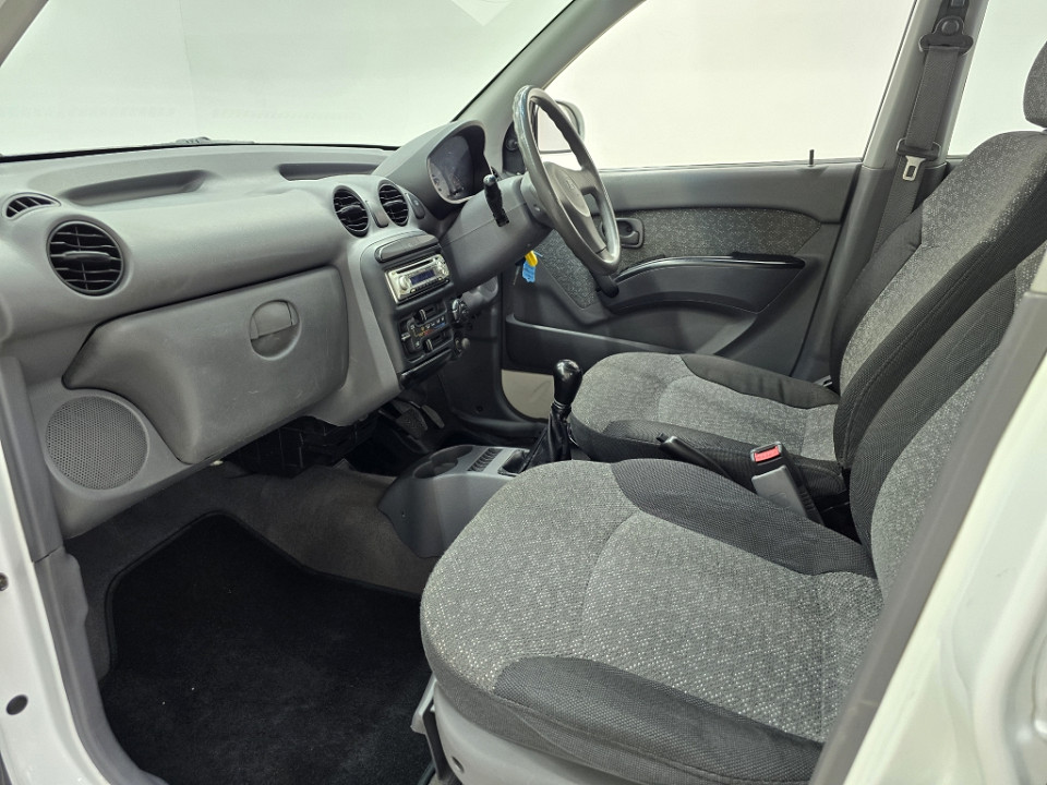 R79 990 R1 724 pmiStandard factory specifications - Power steering, Seats 5, Spare wheel , Air conditioner, Electric windows, Colour coded bumbers, Fog lamps - front, Fuel UNLEADED, Engine TRANSVERSE INLINE 4, Engine size 1086cc, CO2 0g/Km, Power 43kW@5500, Torque 87Nm@3000, SOHC 3 VALVES PER CYLINDER, Gears 5, Drive FRONT, Boot capacity 263 litres, Average fuel consumption 7.26l/100km, Service interval 15000km