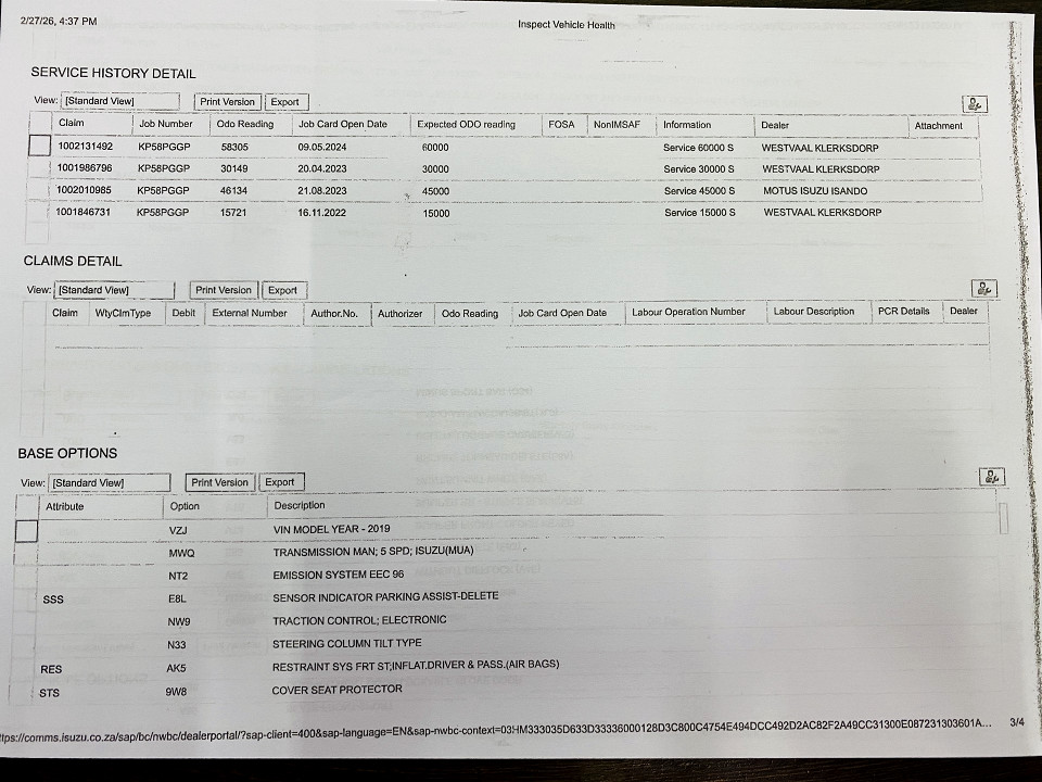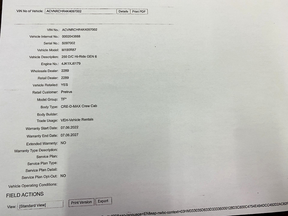 R399 950 R8 621 pmiStandard factory specifications - ABS, Electronic brakeforce distribution, Air bags 2, Power steering, Seats 5, Spare wheel , Air conditioner, Electric windows, Radio, Remote side mirrors, Fuel DIESEL, Engine LONGITUDINAL INLINE 4, Engine size 2499cc, CO2 0g/Km, Power 100kW@3400, Torque 320Nm@1800, SOHC 4 VALVES PER CYLINDER, Gears 5, Drive REAR, Boot capacity 0 litres, Average fuel consumption 7.7l/100km, Service interval 15000km