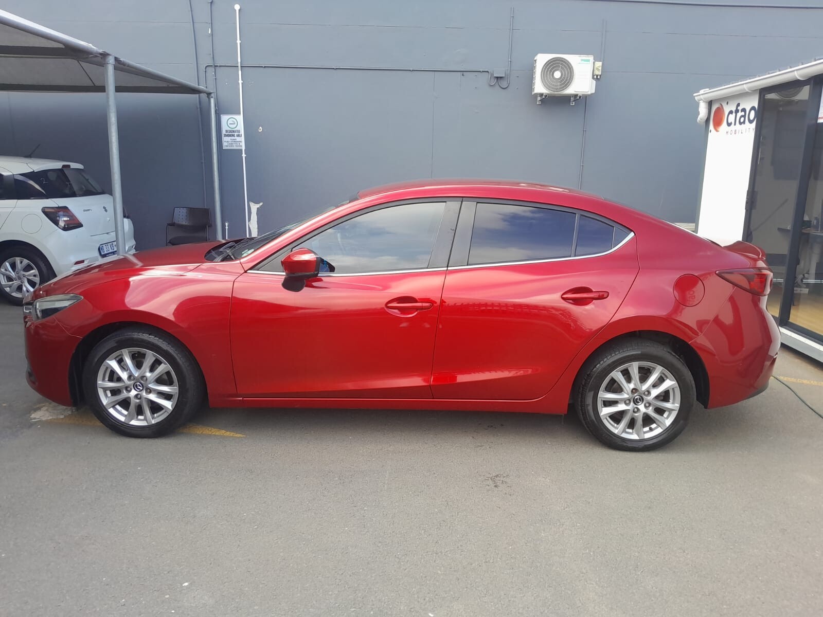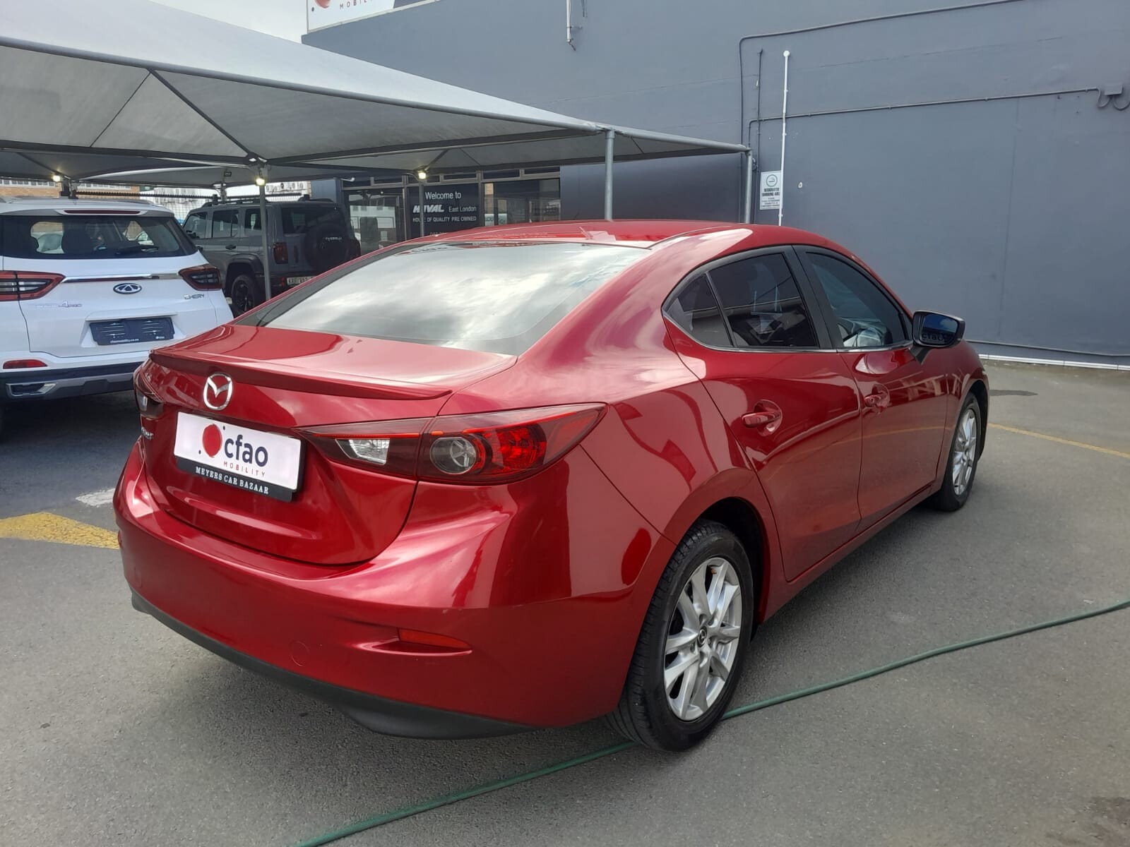 R159 995 R3 449 pmiThe Mazda3 Hatch 1.6 Active comes equipped with dual front airbags, ABS with electronic brakeforce distribution, and ISOFIX child seat anchors to cover the basics of safety. For comfort, you’ll find manual air conditioning, cloth seats, and a tilt-and-telescopic steering wheel. Convenience features include power windows all around, central locking, and remote keyless entry, while the infotainment setup is a straightforward CD player with USB and AUX inputs feeding four speakers. On the outside, the Active trim rides on 15-inch steel wheels with covers, with body-colored bumpers and mirrors to keep the look cohesive. Inside, you get split-folding rear seats for added practicality, plus essentials like an immobilizer and rear window defogger.