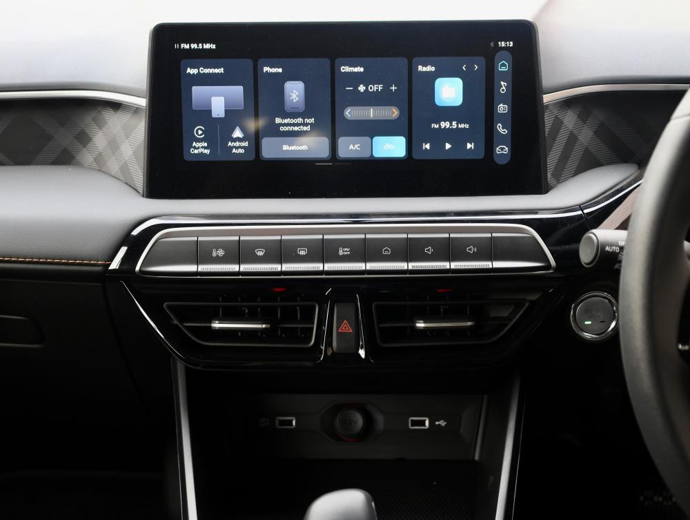 R309 900 R6 680 pmi• 1.5 L petrol engine (81 kW / 6 000 rpm, 142 Nm / 4 500 rpm). • CVT transmission (front-wheel drive). • Same body, suspension and wheel set-up as manual: 16″ alloys, MacPherson front / torsion beam rear. • 10.25″ touchscreen + Apple CarPlay/Android Auto. • 7″ digital instrument display. • Convenience features: Bluetooth, first-row USB, rear parking sensors. • Safety: strong body, airbags & advanced restraint systems as per Comfort grade.