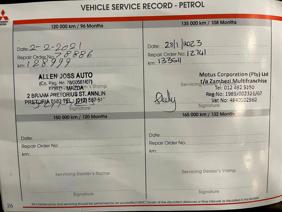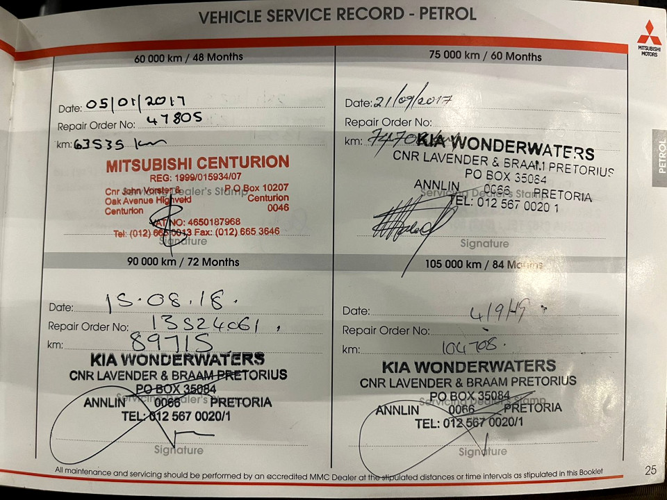 R149 500 R3 222 pmiStandard factory specifications - ABS, Electronic brakeforce distribution, Auto Windscreen Wipers, Air bags 7, Auto lights, Power steering, Steering adjustment, Multi function steering wheel, Cruise control, Seats 5, Electric mirror fold, Spare wheel FULLSIZE, Keyless entry, Air conditioner, Climate control, Electric windows, Radio, Leather, Remote side mirrors, Park distance - rear, Alloy wheels, Fuel UNLEADED, Engine TRANSVERSE INLINE 4, Engine size 1998cc, CO2 0g/Km, Power 110kW@6000, Torque 197Nm@4200, DOHC 4 VALVES PER CYLINDER, MIVEC, Gears 6, Drive FRONT, Top speed 190Km/h, Boot capacity 442 litres, Average fuel consumption 7.6l/100km, Service interval 15000km