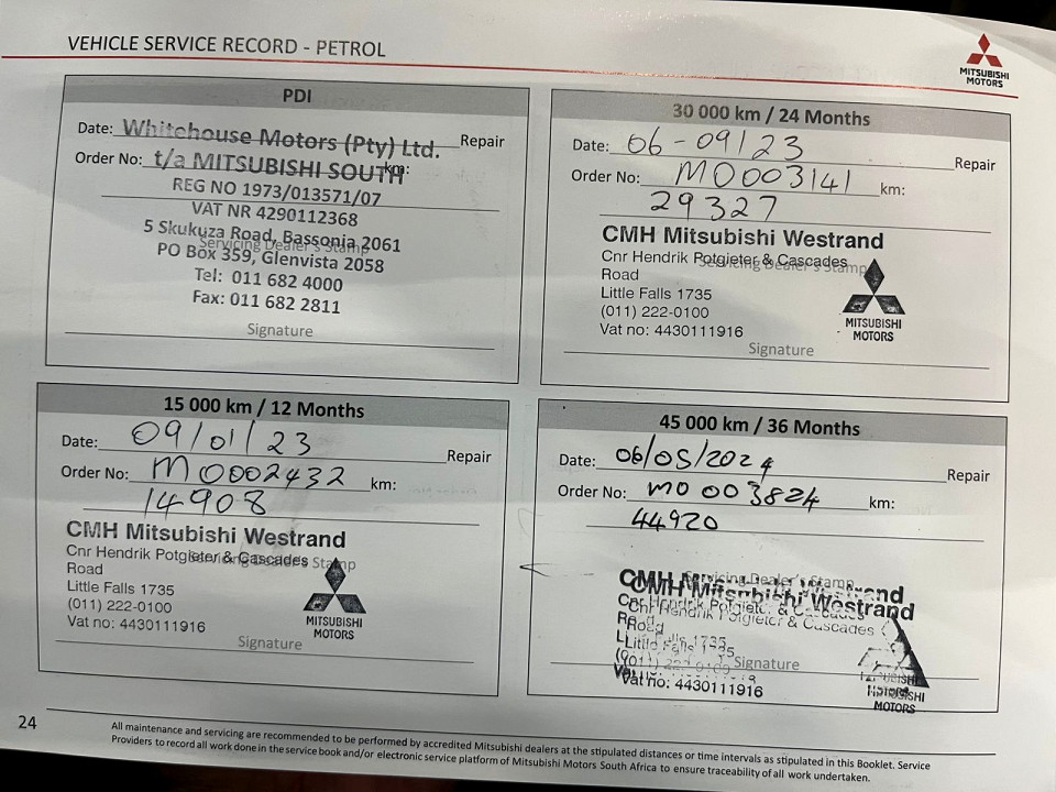 R279 900 R6 033 pmiStandard factory specifications - ABS, Electronic brakeforce distribution, Auto Windscreen Wipers, Air bags 7, Auto lights, Day lights, Auto lock, ISO fix, Power steering, Steering adjustment, Cruise control, Seats 5, Electric mirror fold, Spare wheel FULLSIZE, Keyless entry, Air conditioner, Electric windows, Radio, Leather, Remote side mirrors, Park distance - rear, Alloy wheels, Fuel UNLEADED, Engine TRANSVERSE INLINE 4, Engine size 1998cc, CO2 184g/Km, Power 110kW@6000, Torque 198Nm@4200, MIVEC DOHC, 4 VALVES PER CYLINDER, Gears 0, Drive FRONT, Top speed 188Km/h, Boot capacity 437 litres, Average fuel consumption 7.9l/100km, Service interval 15000km