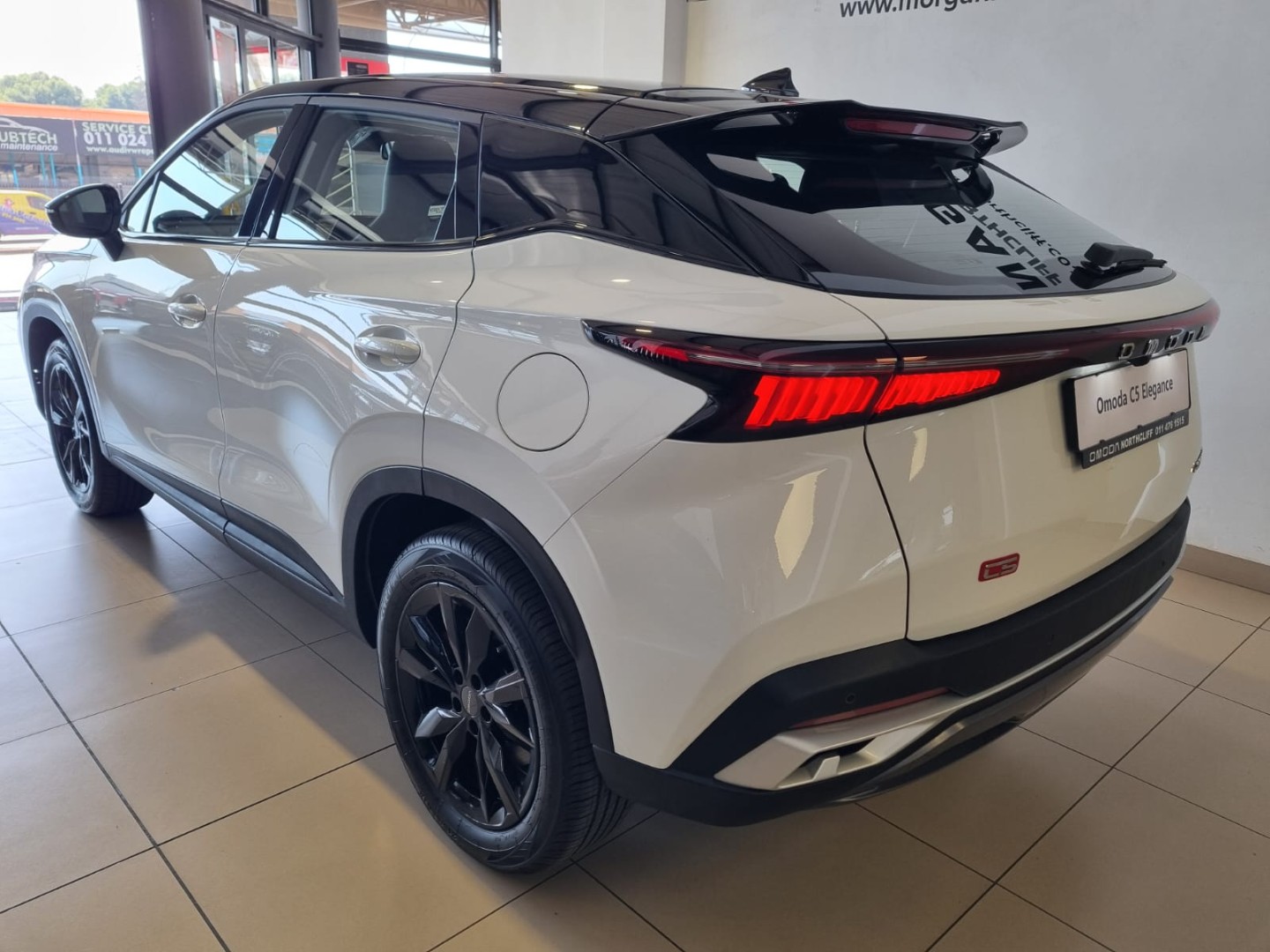 R429 800 R9 264 pmiThe 2025 Omoda C5 1.5T Elegance X is powered by a 1.5L turbocharged petrol engine producing 115 kW and 230 Nm of torque, mated to a 6-speed dual-clutch transmission for front-wheel drive. Key features include dual 10.25-inch screens, a 360 camera system, wireless charging, and a 5-star Euro NCAP safety rating. It has a bold, futuristic design with features like black-out 18-inch alloy wheels and a power sunroof. Engine & Performance Engine: 1.5L turbocharged petrol (1.5TCI) Power: 115 kW Torque: 230 Nm Transmission: 6-speed automated dual-clutch Drivetrain: Front-wheel drive