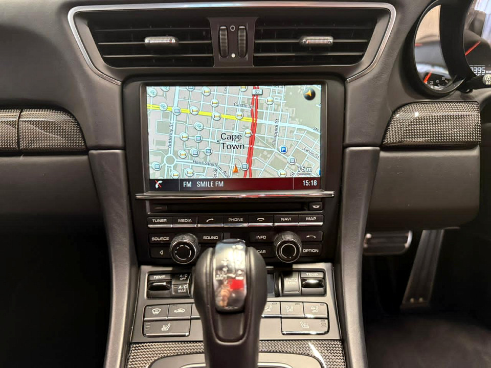 R2 599 000 R56 020 pmiStandard factory specifications - ABS, Electronic brakeforce distribution, Auto Windscreen Wipers, Air bags 6, Day lights, Auto lock, Power steering, Steering adjustment, Cruise control, Seats 4, Spare wheel NA, Keyless entry, Air conditioner, Climate control, Electric windows, Radio, Leather, Remote side mirrors, Metallic, Park distance - rear, Satelite navigation, Alloy wheels, Fuel UNLEADED, Engine LONGITUDINAL FLAT 6, Engine size 3800cc, CO2 227g/Km, Power 412kW, Torque 750Nm@2200, DOHC 4 VALVES PER CYLINDER, VARIABLE VALVE TIMING, Gears 7, Drive ALL, Top speed 318Km/h, Boot capacity 125 litres, Average fuel consumption 9.7l/100km, Service interval 30000km