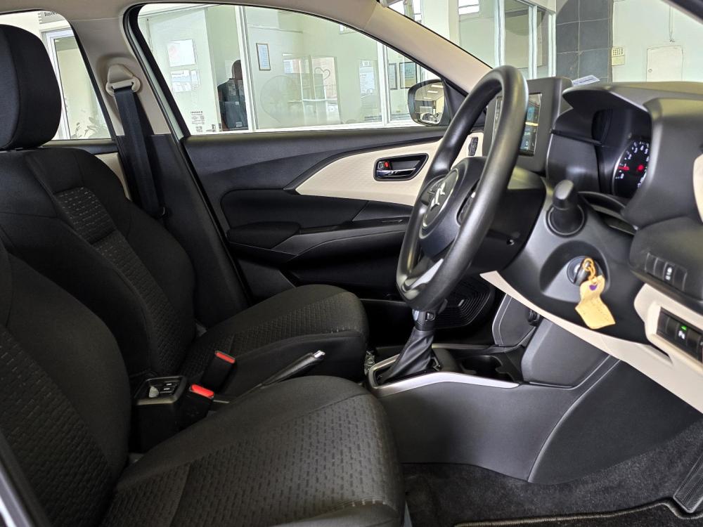 R272 900 R5 882 pmiElectrically adjustable, fold-in door mirrors with built-in turn signal lamps, Tilt-adjust steering wheel, Electric windows (front & rear), 3-position front & centre cabin lights, Headlight adjuster, Remote central locking, Engine Auto Stop-Start (MT), Digital manual air conditioning, Rear air conditioning vents, Shark fin antenna with 4x speakers, Seat height adjuster (driver's side), Rear armrest with cupholders, 12v Accessory Socket, Rear USB-A and USB-C charging ports, ABS with EBD function and BA ESP®**, Hill-hold control, Rear parking sensors, Six airbags - dual front, side and curtain airbags, Pre-tensioning and force-limiting seatbelts, ISOFIX child seat anchorage, Side impact door beams, Immobiliser & security alarm, 15” black alloy wheels, Chrome painted grille, Front & rear mudflaps, Audio and Bluetooth®* controls on the steering wheel, Cruise Control, 7” touchscreen radio with Smartphone integration, Wireless Apple CarPlay and Android Auto, Front USB-A port, Rearview camera, Chrome interior trim pieces. 5-year / 200 000 km mechanical warranty*, 6-year / unlimited km body corrosion warranty, 4-year / 60 000 km service plan, Service intervals of 15 000 km or one year, whichever comes first.