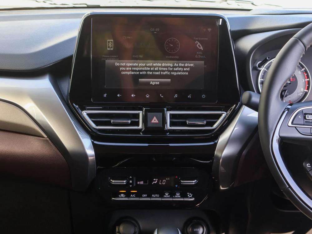 R368 900 R7 951 pmiThe Fronx GLX features; 16 " Alloy wheels, Auto LED multi-reflector headlamps with DRL, Automatic Climate Control, cruise control, Hill hold control and rear parking sensors. Also featured is a 7" Touchscreen Radio with wireless smartphone connectivity, Keyless entry with push button start, 360 degree camera, Head-up display, Wireless Charger and 6 Airbags. Vehicle comes standard with a 4 year / 60 000km Service Plan and a 5 year / 200 000km Warranty