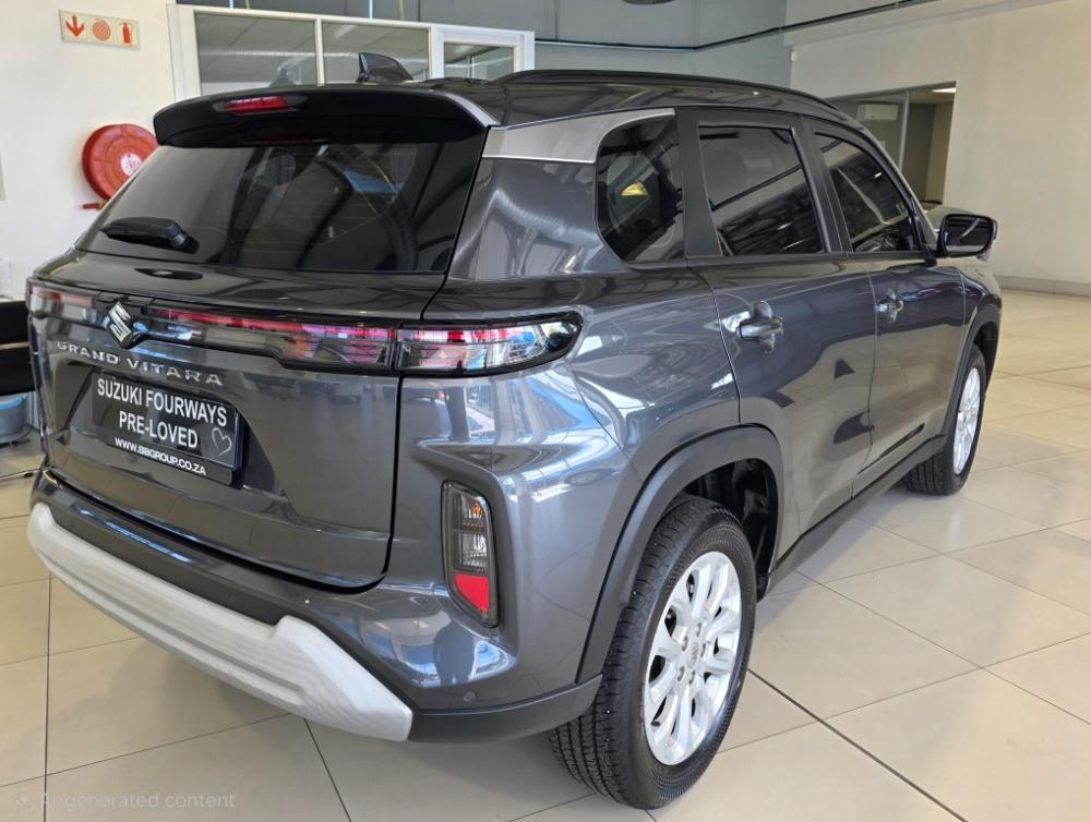 R319 800 R6 893 pmi- Year/variant: 2025 Grand Vitara 1.5 GL Auto, grey, petrol - Engine/performance: 1.5l i4, 77 kW, 138 Nm, top speed 170 km/h - Efficiency/range: 6.0 l/100km average, approx. 750 km range, 45l tank, 142 g/km CO2 - Condition/care: Full franchise service history, well maintained for reliability - Warranty: Factory warranty active with up to 200 000 km remaining