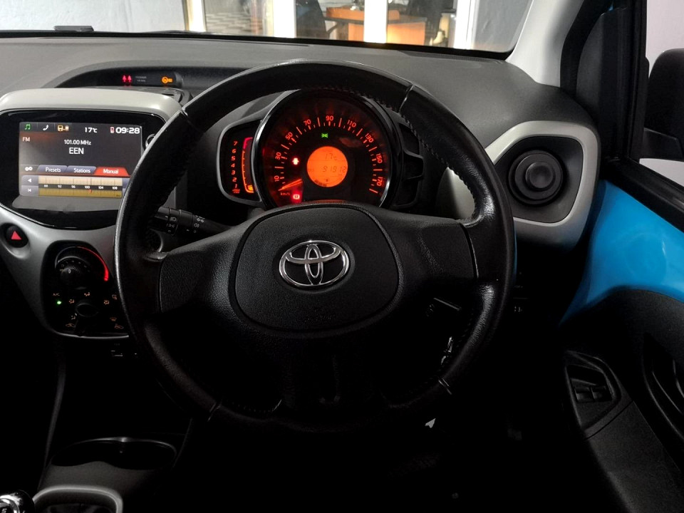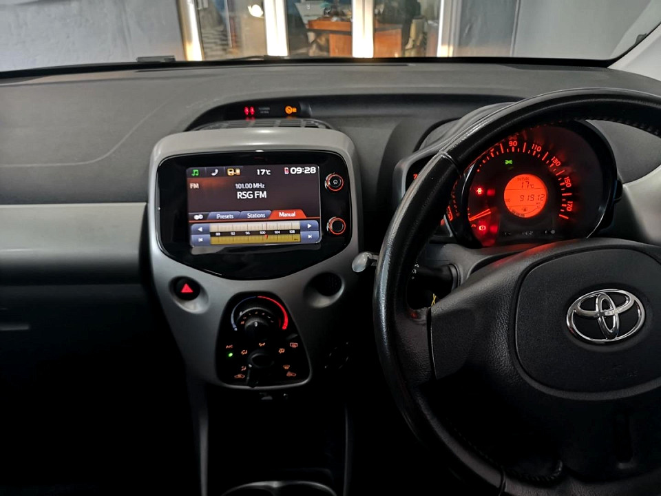 R149 899 R3 231 pmiStandard factory specifications - ABS, Electronic brakeforce distribution, Air bags 4, ISO fix, Power steering, Seats 5, Spare wheel FULLSIZE, Keyless entry, Air conditioner, Electric windows, Radio, Remote side mirrors, Fuel UNLEADED, Engine TRANSVERSE INLINE 3, Engine size 998cc, CO2 102g/Km, Power 51kW@6000, Torque 95Nm@3600, DOHC 4 VALVES PER CYLINDER, VVT-i, Gears 5, Drive FRONT, Top speed 157Km/h, Boot capacity 168 litres, Average fuel consumption 4.4l/100km, Service interval 15000km