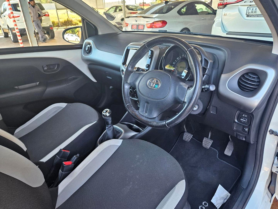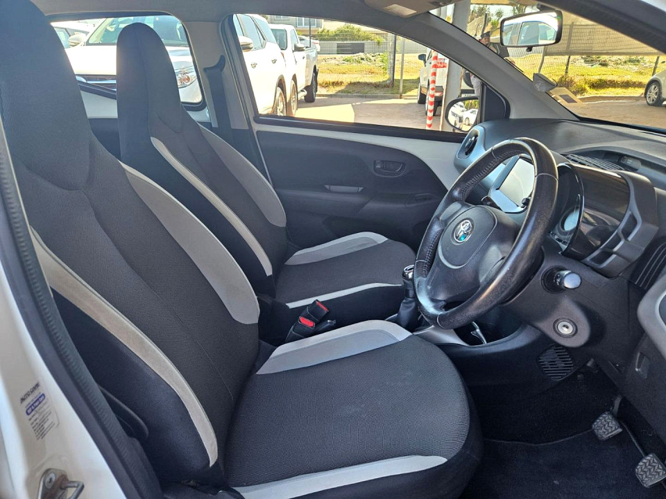 R149 900 R3 231 pmiStandard factory specifications - ABS, Electronic brakeforce distribution, Air bags 4, ISO fix, Power steering, Seats 5, Spare wheel FULLSIZE, Keyless entry, Air conditioner, Electric windows, Radio, Remote side mirrors, Fuel UNLEADED, Engine TRANSVERSE INLINE 3, Engine size 998cc, CO2 102g/Km, Power 51kW@6000, Torque 95Nm@3600, DOHC 4 VALVES PER CYLINDER, VVT-i, Gears 5, Drive FRONT, Top speed 157Km/h, Boot capacity 168 litres, Average fuel consumption 4.4l/100km, Service interval 15000km