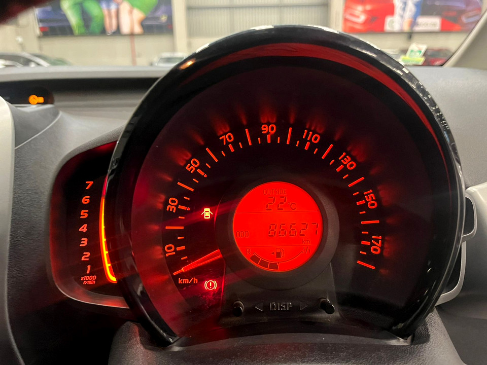 R144 900 R3 123 pmiStandard factory specifications - ABS, Electronic brakeforce distribution, Air bags 6, Auto lock, ISO fix, Brake hazard lights, Power steering, Seats 5, Spare wheel NA, Keyless entry, Air conditioner, Electric windows, Radio, Remote side mirrors, Alloy wheels, Fuel UNLEADED, Engine TRANSVERSE INLINE 3, Engine size 998cc, CO2 97g/Km, Power 53kW@6000, Torque 93Nm@4400, DOHC 4 VALVES PER CYLINDER, VVT-i, Gears 5, Drive FRONT, Top speed 160Km/h, Boot capacity 168 litres, Average fuel consumption 4.3l/100km, Service interval 15000km