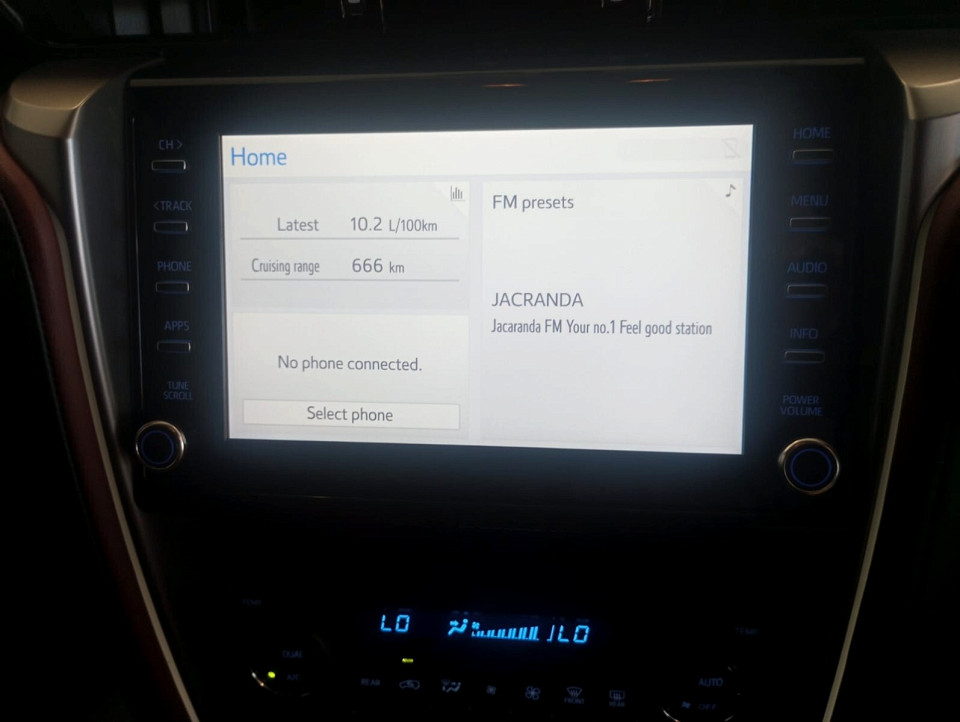 R699 900 R15 086 pmiStandard factory specifications - ABS, Electronic brakeforce distribution, Auto Windscreen Wipers, Air bags 7, Auto lights, Day lights, Auto lock, ISO fix, Brake hazard lights, Power steering, Steering adjustment, Cruise control, Seats 7, Electric mirror fold, Spare wheel FULLSIZE, Keyless entry, Air conditioner, Climate control, Electric windows, Radio, Remote side mirrors, Park distance - rear, Alloy wheels, Fuel DIESEL, Engine TRANSVERSE INLINE 4, Engine size 2755cc, CO2 201g/Km, Power 150kW@3000, Torque 500Nm@1600, DOHC, 4 VALVES PER CYLINDER, Gears 6, Drive REAR, Top speed 175Km/h, Boot capacity 0 litres, Average fuel consumption 7.6l/100km, Service interval 10000km