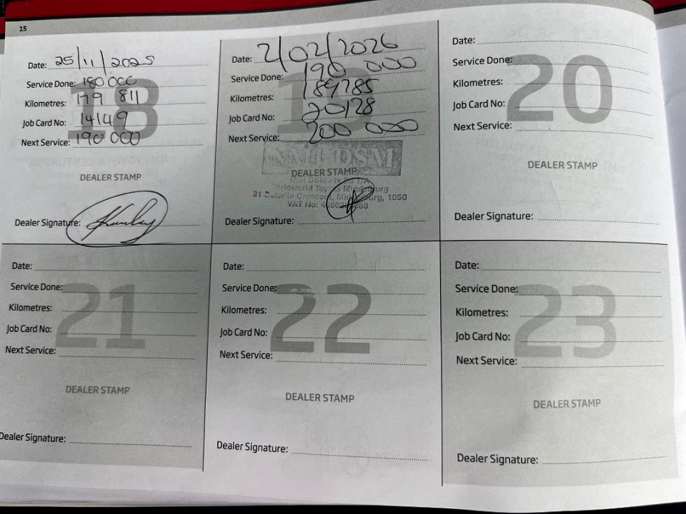 R419 850 R9 050 pmiStandard factory specifications - ABS, Electronic brakeforce distribution, Air bags 7, Auto lock, ISO fix, Brake hazard lights, Power steering, Steering adjustment, Cruise control, Seats 5, Spare wheel FULLSIZE, Keyless entry, Air conditioner, Electric windows, Radio, Remote side mirrors, Park distance - rear, Alloy wheels, Fuel DIESEL, Engine TRANSVERSE INLINE 4, Engine size 2393cc, CO2 192g/Km, Power 110kW@3400, Torque 400Nm@1600, DOHC 4 VALVES PER CYLINDER, VARIABLE VALVE TIMING, Gears 6, Drive REAR, Top speed 170Km/h, Boot capacity 0 litres, Average fuel consumption 7.3l/100km, Service interval 10000km