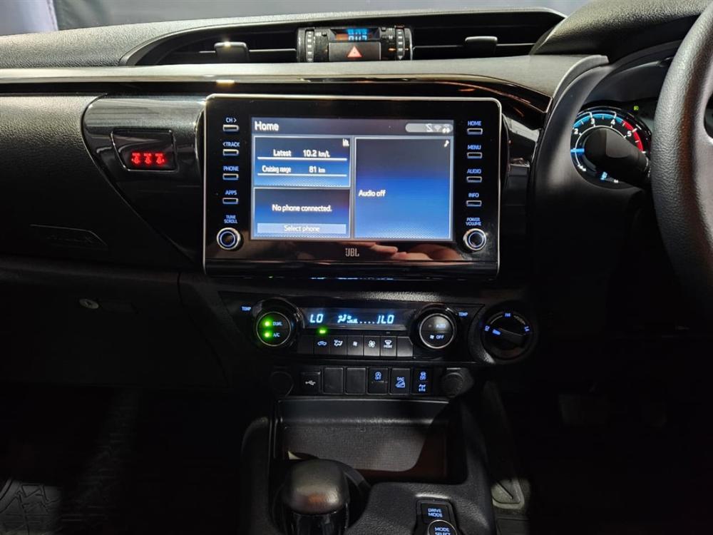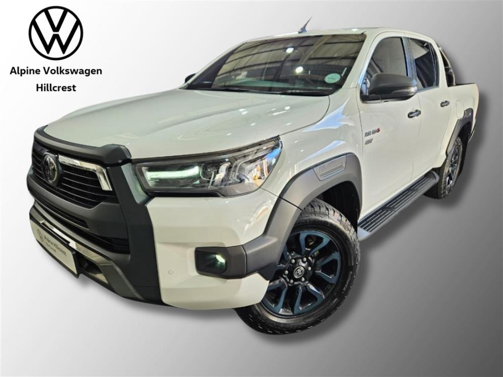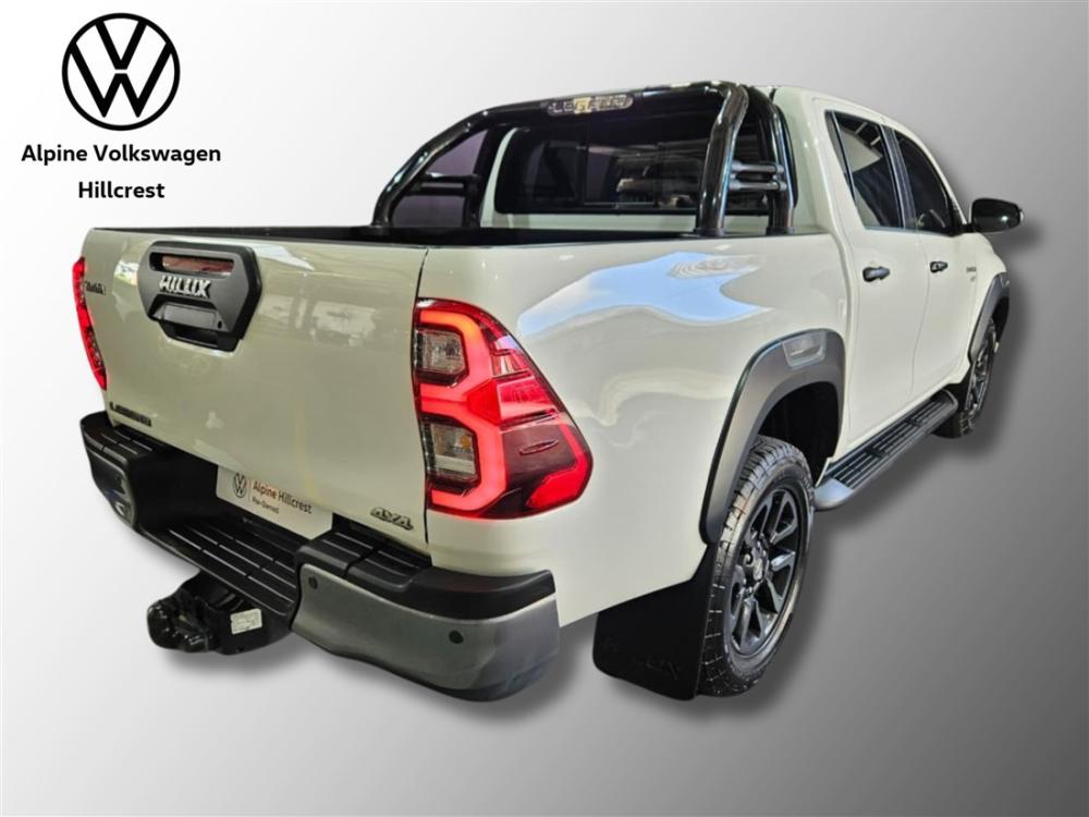 R699 900 R15 086 pmiRef: 334820/1 Experience the legendary toughness and modern innovation of the Toyota Hilux 2.8 GD-6 RB Legend 4x4 Auto Double Cab (MHEV) — built to handle anything from daily driving to demanding off-road adventures with ease. Powered by a proven 2.8L GD-6 turbo diesel engine delivering 150kW and 500Nm, paired with a smooth 6-speed automatic transmission, this Hilux offers effortless performance and excellent towing capability. The addition of mild hybrid technology enhances efficiency and responsiveness, with fuel consumption averaging around 7.5–8.0L/100km. The Legend specification ensures premium comfort and convenience, featuring leather upholstery, multifunction steering wheel, cruise control, touchscreen infotainment with Apple CarPlay and Android Auto, Bluetooth connectivity, reverse camera, and automatic climate control. Safety is well covered with ABS, EBD, stability control, hill assist, and multiple airbags. Finished with a durable bin lining for added practicality, this double cab is ready for work and leisure alike. Balance of the manufacturer's warranty included for added peace of mind. Contact Alpine VW Hillcrest today to arrange a viewing and test drive — this Hilux won’t stay on the floor for long. Advertised price is subject to in house finance.