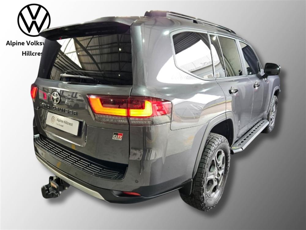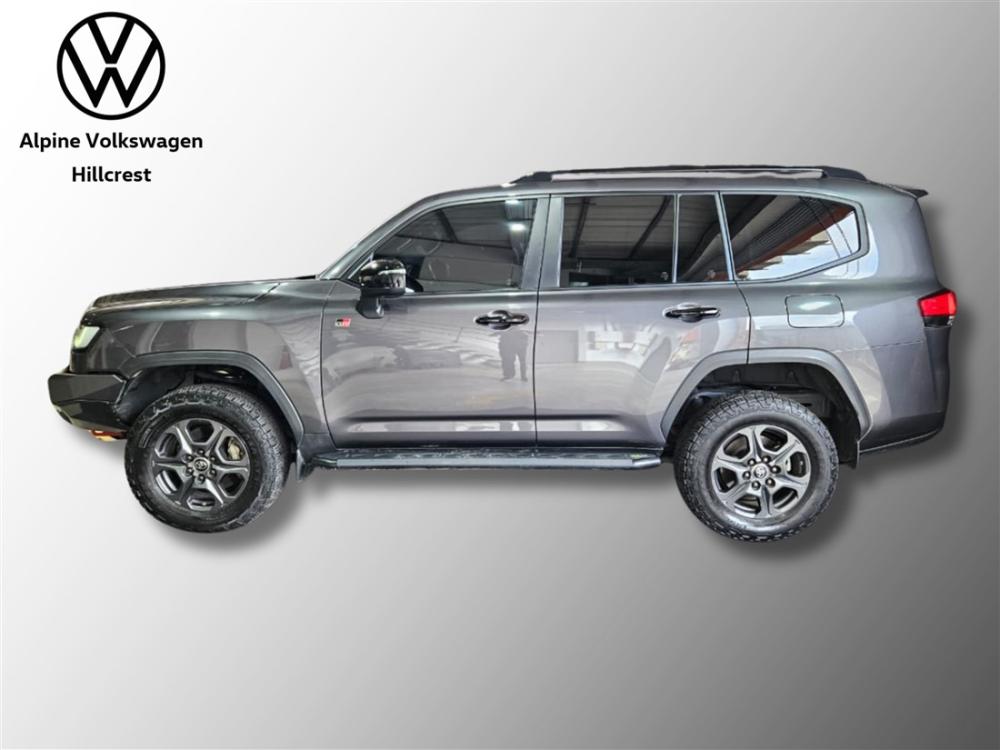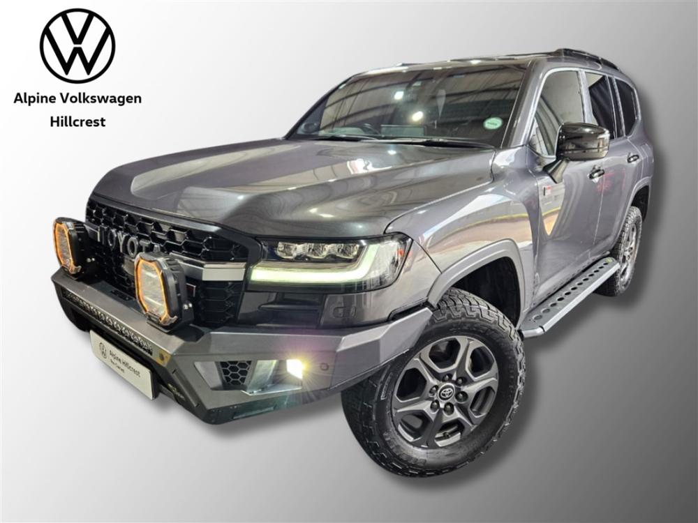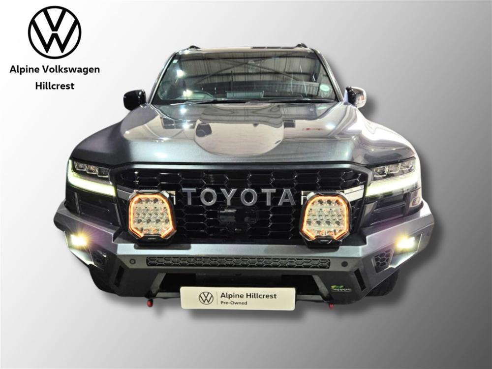 R1 899 990 R40 953 pmiExperience uncompromising luxury and legendary off-road capability with the Toyota Land Cruiser 300 V6 3.3 D GR Sport. Powered by a refined 3.3L V6 turbo diesel engine delivering 227kW and 700Nm, paired with a smooth 10-speed automatic transmission, this flagship SUV offers effortless performance on any terrain while maintaining impressive efficiency at approximately 8.9L/100km. The GR Sport enhances rugged capability with advanced 4x4 systems, including Multi-Terrain Select, Crawl Control, and electronic differential locks, ensuring confidence wherever the road—or lack thereof—takes you. Inside, enjoy premium leather upholstery, a large touchscreen infotainment system with smartphone connectivity, a digital driver display, multi-zone climate control, and Toyota’s comprehensive safety suite with adaptive cruise control, lane assist, and more. This example is exceptionally well-equipped with high-quality upgrades, including an Iron Man front bumper, Iron Man side steps, under body protection trays, full vehicle VPS paint protection film, Cooper tyres, Thor sound dampening, 9-inch spotlights, and a 33-inch light bar—ready for serious adventure. Balance of extended warranty and balance of 9 year/90 000km service plan included for added peace of mind. Contact Alpine VW Hillcrest today to arrange a viewing and test drive of this incredible vehicle. Advertised price is subject to in house finance.