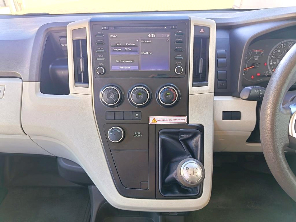 R649 990 R14 010 pmiStandard factory specifications - ABS, Air bags 2, Power steering, Steering adjustment, Seats 11, Spare wheel FULLSIZE, Keyless entry, Air conditioner, Electric windows, Radio, Remote side mirrors, Park distance - rear, Fuel DIESEL, Engine LONGITUDINAL INLINE 4, Engine size 2755cc, CO2 0g/Km, Power 130kW@3400, Torque 420Nm@1400, DOHC 4 VALVES PER CYLINDER, Gears 6, Drive REAR, Top speed 100Km/h, Boot capacity 0 litres, Average fuel consumption 8.7l/100km, Service interval 10000km