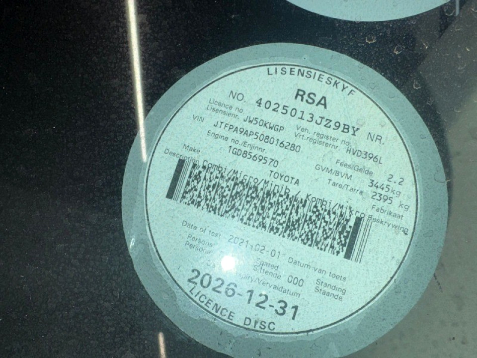 R558 999 R12 049 pmiStandard factory specifications - ABS, Air bags 2, Power steering, Steering adjustment, Seats 11, Spare wheel FULLSIZE, Keyless entry, Air conditioner, Electric windows, Radio, Remote side mirrors, Fuel DIESEL, Engine LONGITUDINAL INLINE 4, Engine size 2755cc, CO2 0g/Km, Power 130kW@3400, Torque 420Nm@1400, DOHC 4 VALVES PER CYLINDER, Gears 6, Drive REAR, Top speed 100Km/h, Boot capacity 0 litres, Average fuel consumption 8.7l/100km, Service interval 10000km