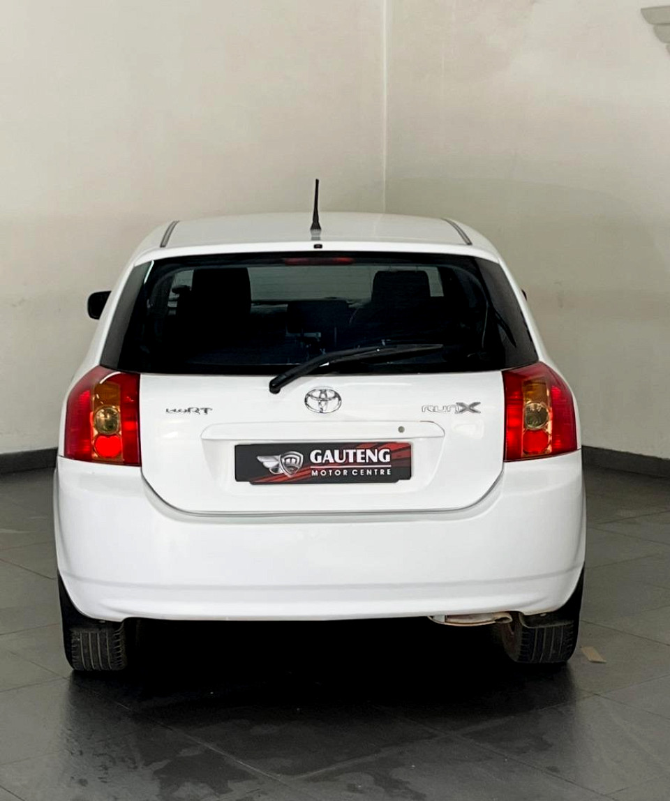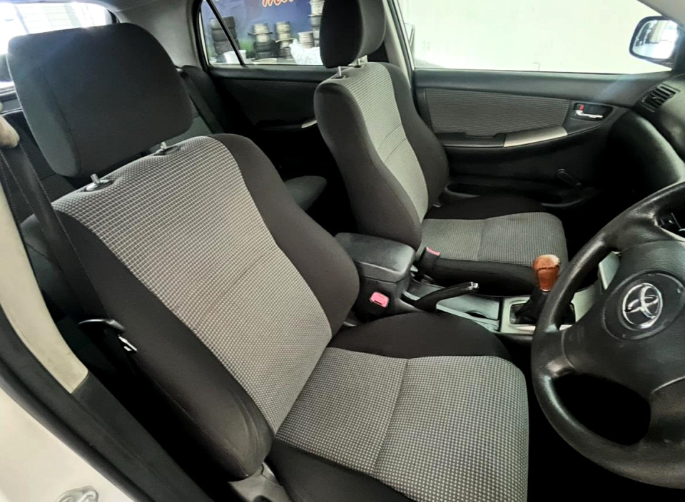 R89 900 R1 938 pmiStandard factory specifications - Power steering, Steering adjustment, Seats 5, Spare wheel , Keyless entry, Air conditioner, Radio, Remote side mirrors, Metallic, Colour coded bumbers, Alloy wheels, Fuel UNLEADED, Engine TRANSVERSE INLINE 4, Engine size 1398cc, CO2 0g/Km, Power 71kW@6000, Torque 127Nm@4800, DOHC 4 VALVES PER CYLINDER, VVT-i, Gears 5, Drive FRONT, Top speed 182Km/h, Boot capacity 289 litres, Average fuel consumption 7.92l/100km, Service interval 15000km
