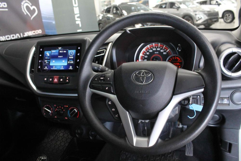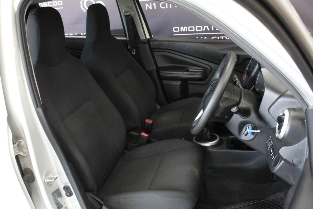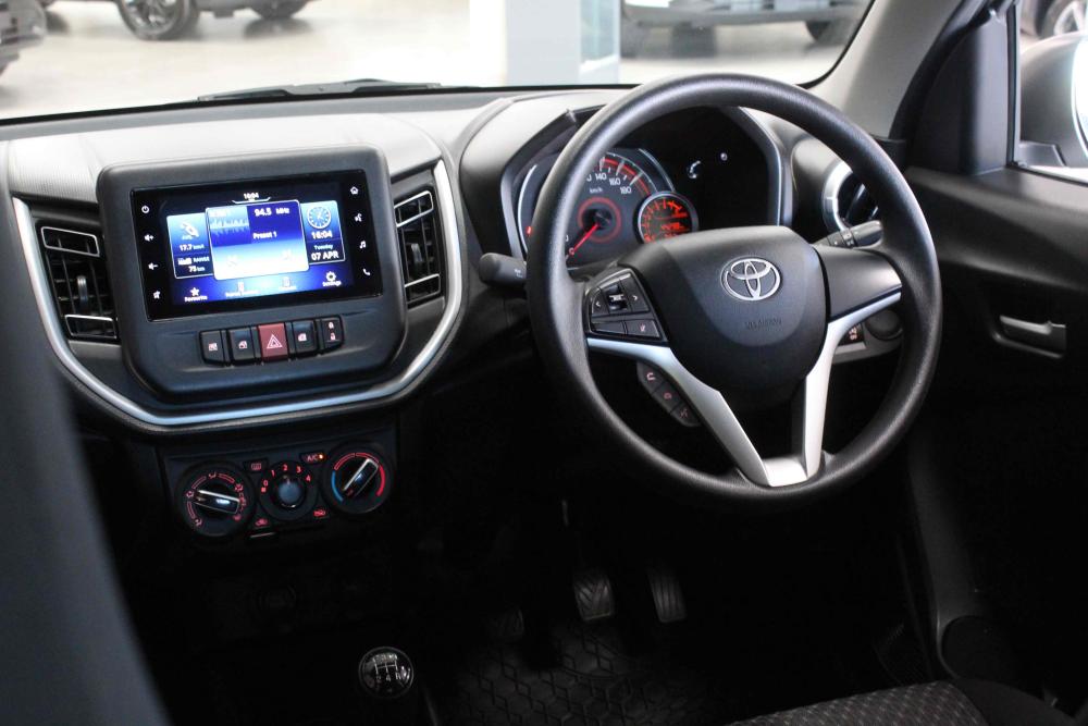 R169 900 R3 662 pmiEngine: 1.0-liter 3-cylinder petrol (naturally aspirated). Performance: 49kW @ 5,500 rpm and 89kW @ 3,500 rpm. Fuel Consumption: Claimed 4.4L/100km Transmission: 5-Speed Manual Wheels: 15-inch alloy wheels. Exterior: Electric mirrors, halogen headlights, rear park distance control. Interior & Convenience: Apple CarPlay/Android Auto, 4-speaker sound system, manual air conditioning, electric windows (front & rear), 12V power socket. Safety: ABS, Electronic Brake Force Distribution (EBD), Vehicle Stability Control (VSC), and 2 airbags. Boot Capacity: 295 litres.