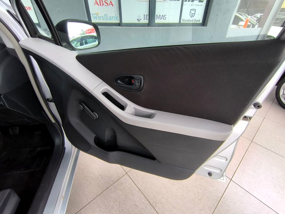 R109 900 R2 369 pmiStandard factory specifications - ABS, Electronic brakeforce distribution, Air bags 2, Power steering, Steering adjustment, Seats 5, Spare wheel FULLSIZE, Air conditioner, Radio, Remote side mirrors, Metallic, Colour coded bumbers, Fuel UNLEADED, Engine LONGITUDINAL INLINE 4, Engine size 1298cc, CO2 0g/Km, Power 63kW@6000, Torque 121Nm@4400, DOHC 4 VALVES PER CYLINDER, VARIABLE VALVE TIMING, Gears 5, Drive FRONT, Top speed 170Km/h, Boot capacity 192 litres, Average fuel consumption 5.5l/100km, Service interval 15000km