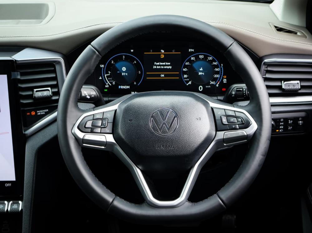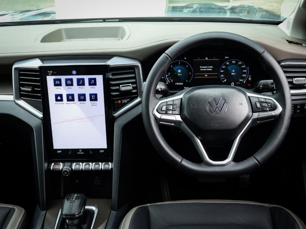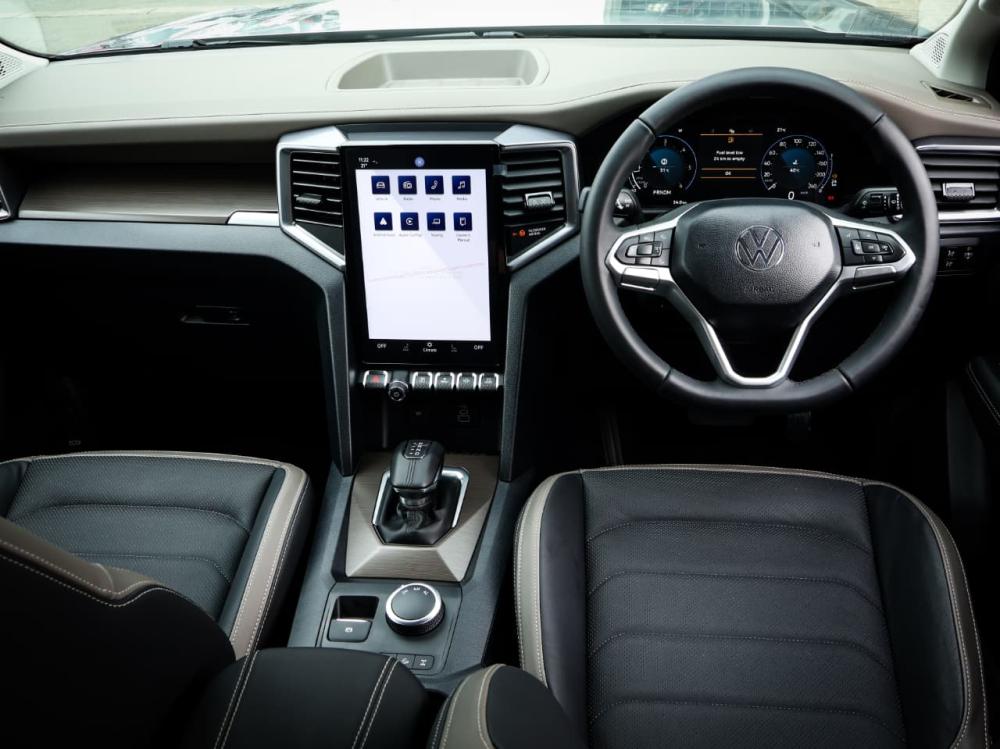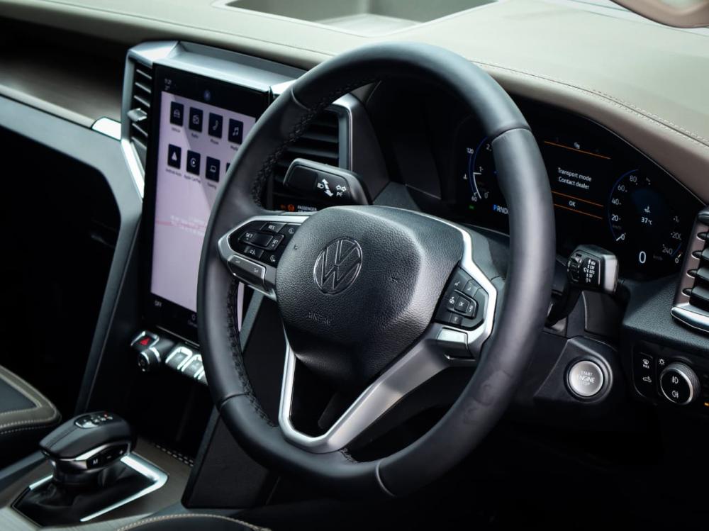 R880 000 R18 968 pmiRUNNING GEAR: 4MOTION®, selectable four-wheel drive (part-time only) with low-range transfer case: 2H, 4H and 4L. Electromechanical power steering. Drive profile selection: Normal, Eco and Slippery. Electronic rear differential locking axle. Electromechancial parking brake with auto-hold function. Front and rear disc brakes. BRAKES: ABS (Anti-locking Brake System) EBD (Electronic Brake pressure Distribution). ESP (Electronic Stability Programme) . TCS (Traction Control System). Multicollision brake system. Pre-Collision Assist: Forward Collision Warning with Autonomous Emergency Braking (incl. Pedestrian and Cyclist monitoring). Hill Descent Control. AUDIO & COMMUNICATION: 12“ diagonal TFT/LCD colour touch-screen infotainment screen with radio, 6 speakers and Bluetooth . Active Info Display: 12" TFT/LCD multi-function display . Smartphone connectivity: App-Connect with USB interfaces (1 x type A/1 x type C). USB charging port (A-type) integrated into rear-view mirror housing (power supply only). Inductive charging system in the centre console. SAFETY: Park distance control (front and rear). Fixed rear-view camera. LED Headlights, with LED Daytime Running Lights. LED front fog lights. Light Assist high-beam control incl. automatic headlights on/off (dusk sensor). Driver's and front passenger's airbags with passenger airbag deactivation . Side airbags for front seats and curtain airbag system . Driver knee airbag. Power tailgate lock .Lane Assist: Lane keep system with alert function via steering wheel vibrations and corrective torque steering aid (only occurs when deviating from road markings). SECURITY: Anti-theft alarm system with interior monitoring. Immobiliser. Keyless entry: Access, locking and starting system SEATS: Driver Seat: 10-Way Electric (track, backrest recline, height adjustment, lumbar adjustment and tilt function). Folding 3-seater rear bench seat. Seat material: "Savona" leather (perforated) seat upholstery. CONVENAICES: Front electric windows Rear electric windows. Steering wheel reach and height adjustable. Cruise control incl. speed limiter. Leather wrapped multifunction steering wheel. Dual-zone automatic air-conditioning system. Power inverter: 230 V socket integrated into the front centre armrest. Ambient lighting in front door panels. Side steps (plastic with chrome inserts). Fixed trailer hitch incl. 7-pin socket. Tubular styling bar in chrome finish. GUARANTEES: 5-year / 150,000 km manufacturer warranty 5-year / 100,000 km Genuine Easy Drive maintenance plan. 15,000 km service intervals. 6-year anti-corrosion warranty