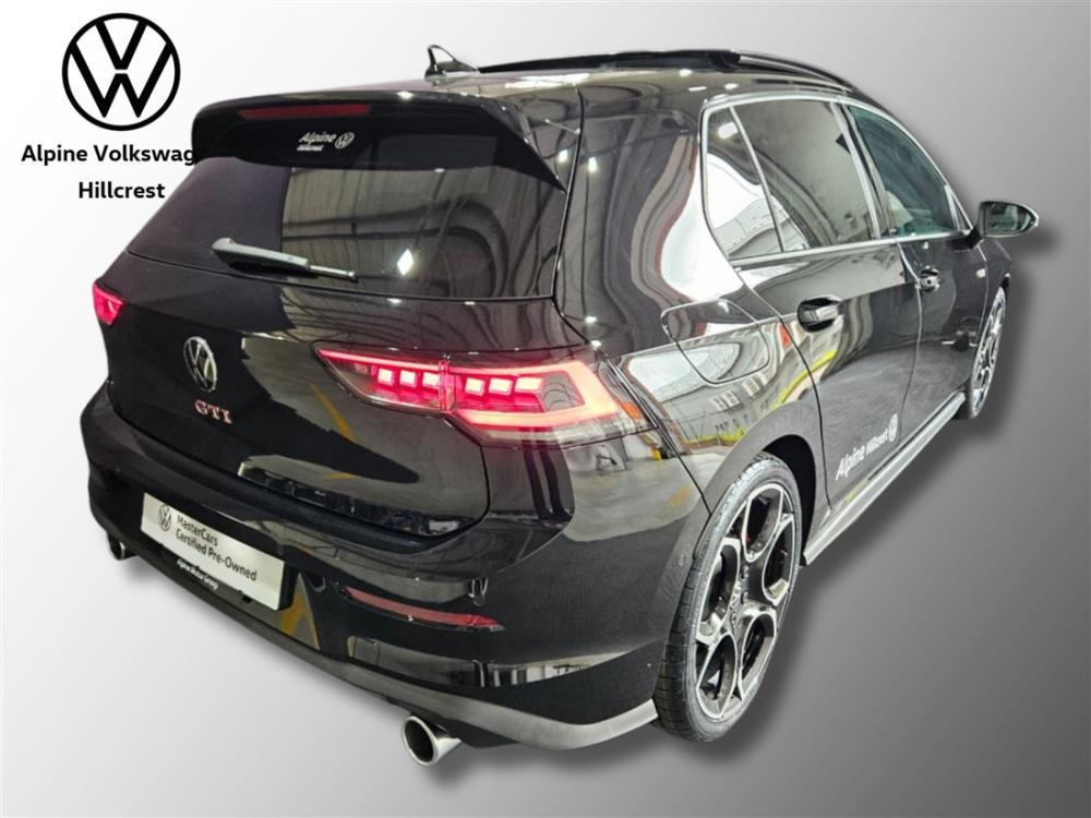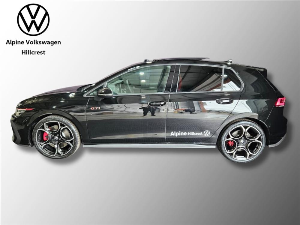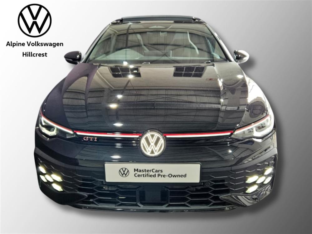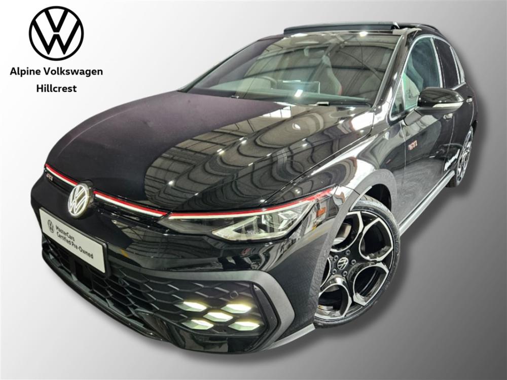 R899 990 R19 399 pmiRef: 332180/1 Experience the perfect blend of dynamic performance, refined technology and everyday practicality with this Volkswagen Golf 8 GTI demo model — offering exceptional value while delivering the unmistakable performance and quality the GTI badge is known for. Powered by a 2.0 litre turbocharged TSI engine producing 195 kW and 370 Nm of torque mated to a 7-speed DSG dual-clutch transmission, this hot hatch accelerates briskly with a 0–100 km/h sprint in approximately 5.9 seconds and an electronically limited top speed of 250 km/h — delivering thrilling performance without compromising fuel efficiency. Loaded with the latest GTI-specific features, you’ll enjoy: Sporty GTI styling with iconic accents and bold alloy wheels. Adaptive chassis dynamics and electronic differential lock for confident handling. Advanced digital cockpit and infotainment for seamless connectivity and control. Comprehensive safety and driver assistance systems built into Volkswagen’s IQ.DRIVE suite. This vehicle comes with peace-of-mind ownership: • Volkswagen Warranty: 3 years / 120 000 km • Service Plan: 5 years / 90 000 km These plans ensure your GTI stays maintained and protected by authorised service experts for years to come. Contact Alpine VW Hillcrest today to arrange a viewing and test drive — feel the performance and quality for yourself. Our team is ready to assist you with personalised finance options. Advertised pricing is subject to in-house finance.