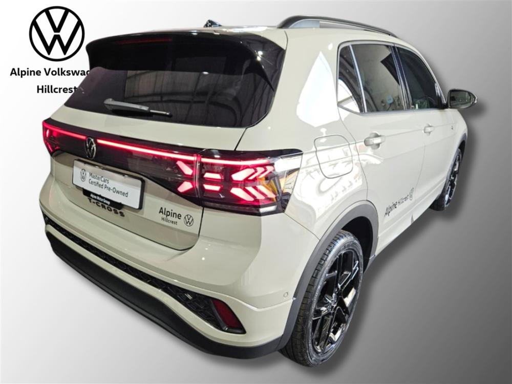 R519 990 R11 208 pmiRef: 328104/1 Introducing this striking Volkswagen T-Cross 1.0 TSI R-Line DSG – a stylish and practical compact SUV that delivers confident performance, premium features and everyday comfort. Powered by a 1.0-litre turbocharged TSI engine producing 85 kW and 200 Nm, paired with a smooth 7-speed DSG automatic transmission, this T-Cross offers responsive performance with excellent efficiency, returning a combined fuel consumption of approx. 5.6 L/100 km. This R-Line stands out with the bold Black Styling Package, including Black 18″ York Alloy Wheels, Black Mirror Caps, Black Roof Rails, Black Grille and Window Trims, complemented by a Removable Trailer Hitch for added versatility. Enjoy everyday convenience with the Comfort Package Plus, featuring Keyless Locking & Start, a Rear View Camera, and Park Assist for effortless parking and manoeuvring. Standard features include cruise control, climate control, electric windows and mirrors, a multifunction steering wheel, ISOFIX child-seat anchors, and a comprehensive safety suite including ABS and airbags. This vehicle includes the balance of a 3-year / 120 000 km warranty and the balance of a 3-year / 45 000 km service plan for added peace of mind. Contact Alpine VW Hillcrest today to book your viewing and test drive – this exceptional T-Cross won’t disappoint. Advertised price is subject to in house finance