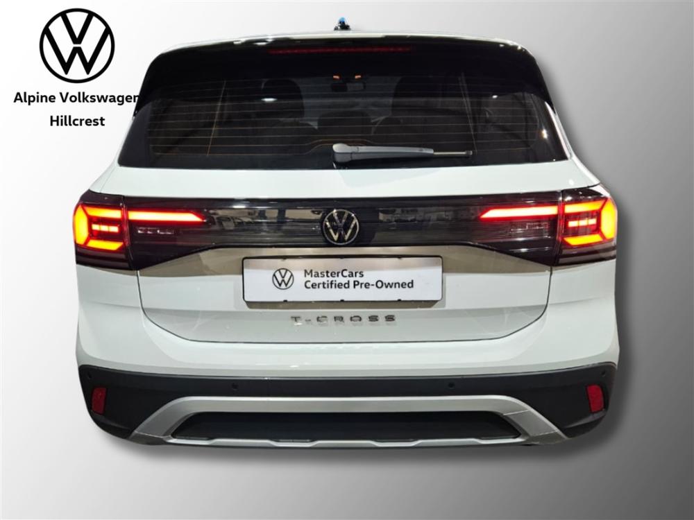 R389 990 R8 406 pmiRef: 333414/1 Drive away in confidence with this stylish Volkswagen T-Cross 1.0 TSI DSG – a compact SUV that perfectly combines performance, comfort and modern technology. Under the bonnet is a lively 1.0-litre turbocharged TSI engine producing 85kW and 200Nm of torque, paired to a smooth-shifting DSG dual-clutch transmission. The result is responsive acceleration, seamless gear changes and impressive fuel efficiency of approximately 5.4L/100km – ideal for both urban driving and longer journeys. This model features 16-inch alloy wheels and comes well equipped with LED headlights, a multifunction steering wheel, cruise control, touchscreen infotainment system with App-Connect, Bluetooth connectivity, USB interface, air conditioning, electric windows and mirrors, remote central locking, ABS, ESC and multiple airbags. The elevated seating position and versatile boot space ensure practicality without compromising on comfort. Enjoy added peace of mind with the balance of the 3-year/120 000km warranty and 3-year/45 000km service plan. Contact Alpine VW Hillcrest today to arrange your viewing and test drive. Experience quality, reliability and value in one exceptional package. Advertised price is subject to in house finance.