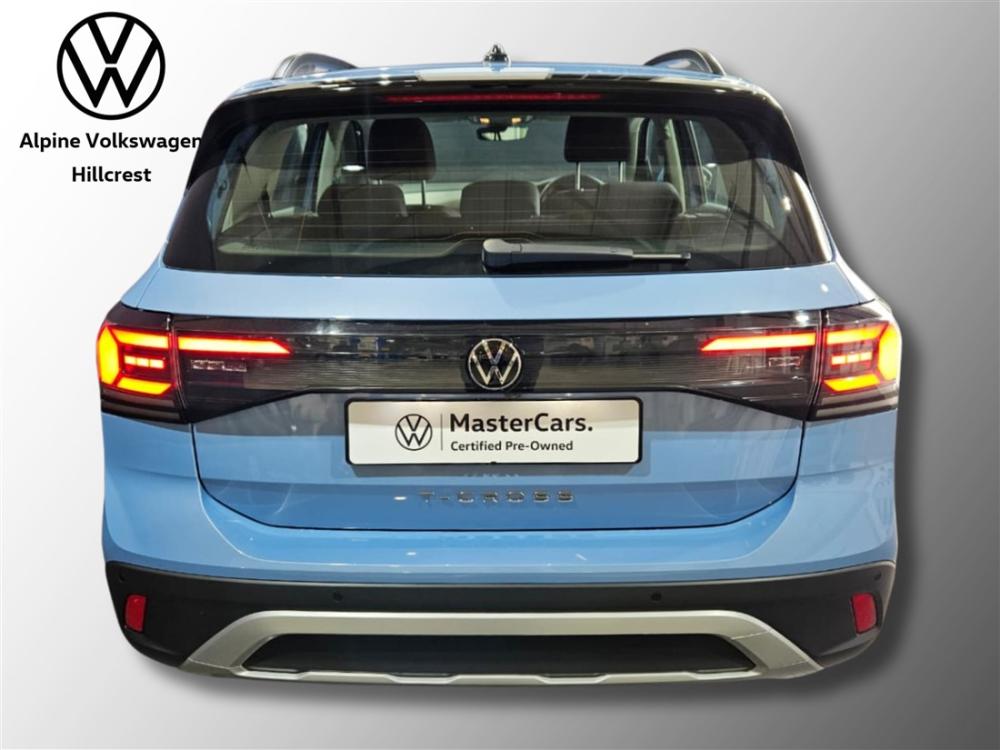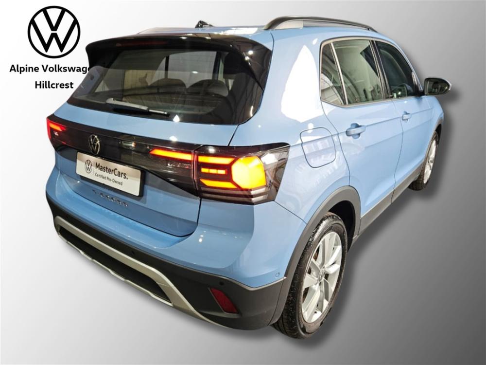 R404 900 R8 727 pmiThe Volkswagen T-Cross 1.0 TSI Life DSG is the perfect compact SUV for modern driving. With its bold design, elevated driving position and impressive efficiency, it offers the ideal balance of comfort, versatility and everyday usability. Powered by a responsive 1.0-litre TSI turbocharged petrol engine producing 85kW and 200Nm of torque, paired with Volkswagen’s smooth 7-speed DSG automatic transmission, the T-Cross delivers lively performance while maintaining excellent fuel efficiency of around 5.6L/100km on the combined cycle. This model is well equipped with premium features including an infotainment system with smartphone connectivity, Digital Cockpit, multifunction steering wheel, air conditioning, cruise control, LED headlights and taillights, park distance control, multiple airbags and advanced safety systems for confident driving. Extras fitted to this vehicle include striking 17-inch Bangalore alloy wheels, the Lights and Vision Package, as well as the Comfort Package Plus which adds keyless locking and starting, Park Assist and a rear view camera for effortless parking and everyday convenience. The vehicle also includes the balance of Volkswagen’s 3 year / 120 000km warranty and 3 year / 45 000km service plan, offering added peace of mind. Contact Alpine Volkswagen Hillcrest today to arrange a viewing and test drive and experience why the T-Cross remains one of the most popular compact SUVs on the road. Advertised price is subject to in house finance.
