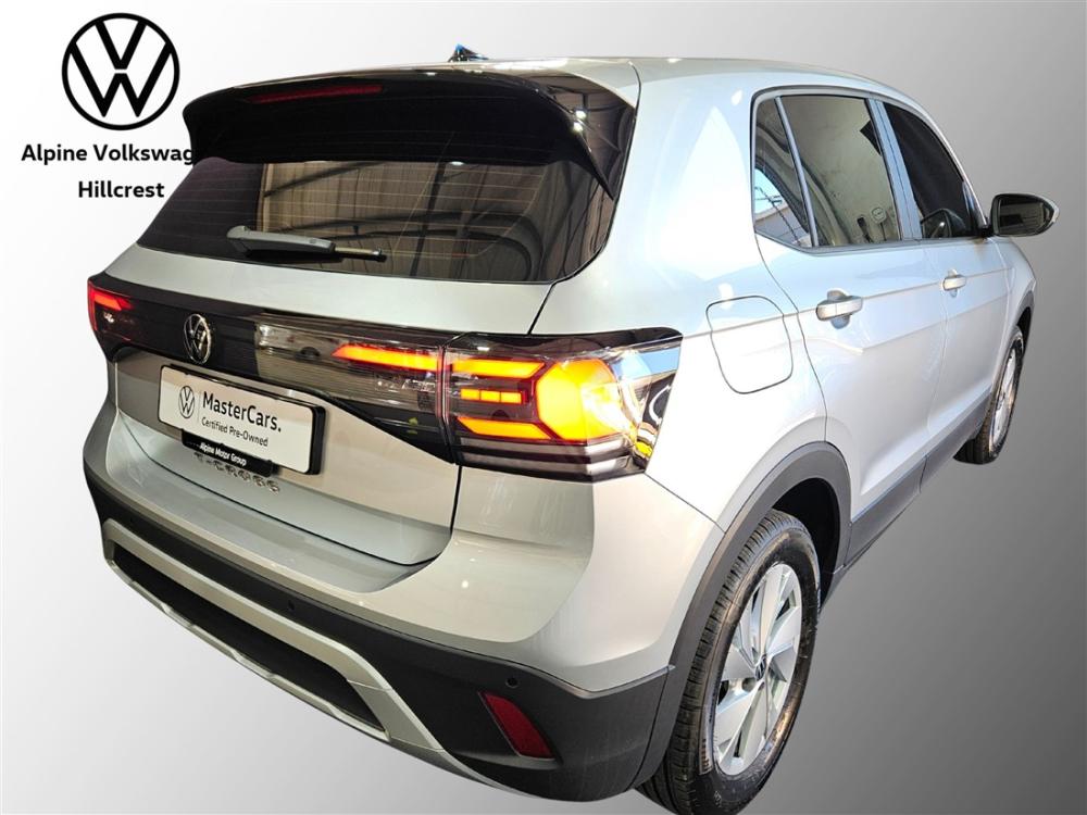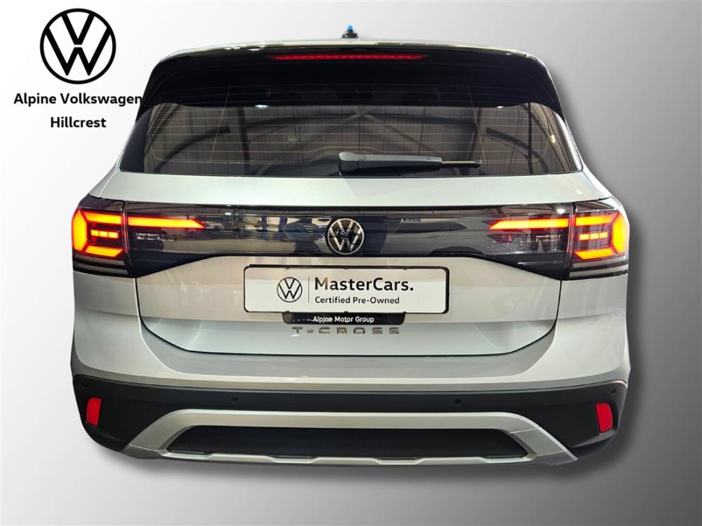 R394 990 R8 514 pmiStylish, practical and packed with modern technology, the Volkswagen T-Cross 1.0 TSI DSG is the perfect compact SUV for city and weekend driving. Its sleek design, spacious interior, and efficient performance make every journey enjoyable. Powered by a 1.0-litre turbocharged TSI engine producing 85 kW and 200 Nm of torque, paired with Volkswagen’s smooth 7-speed DSG automatic transmission, the T-Cross delivers responsive performance with fuel consumption from around 5.4L/100km. This model comes well equipped with features including a touchscreen infotainment system with Apple CarPlay and Android Auto, digital cockpit display, multifunction steering wheel, cruise control, air conditioning, electric windows and mirrors, rear park distance control, and 16-inch alloy wheels for added style. Safety is a priority with multiple airbags, ABS, electronic stability control, and ISOFIX child seat anchors, providing confidence on every drive. The vehicle includes the balance of Volkswagen’s 3 year / 120 000 km warranty and a 2 year / 45 000 km service plan, ensuring added peace of mind and reduced running costs. Contact Alpine VW Hillcrest today to arrange a viewing and test drive and experience the T-Cross’s efficiency, comfort, and technology for yourself. Advertised price is subject to in house finance.