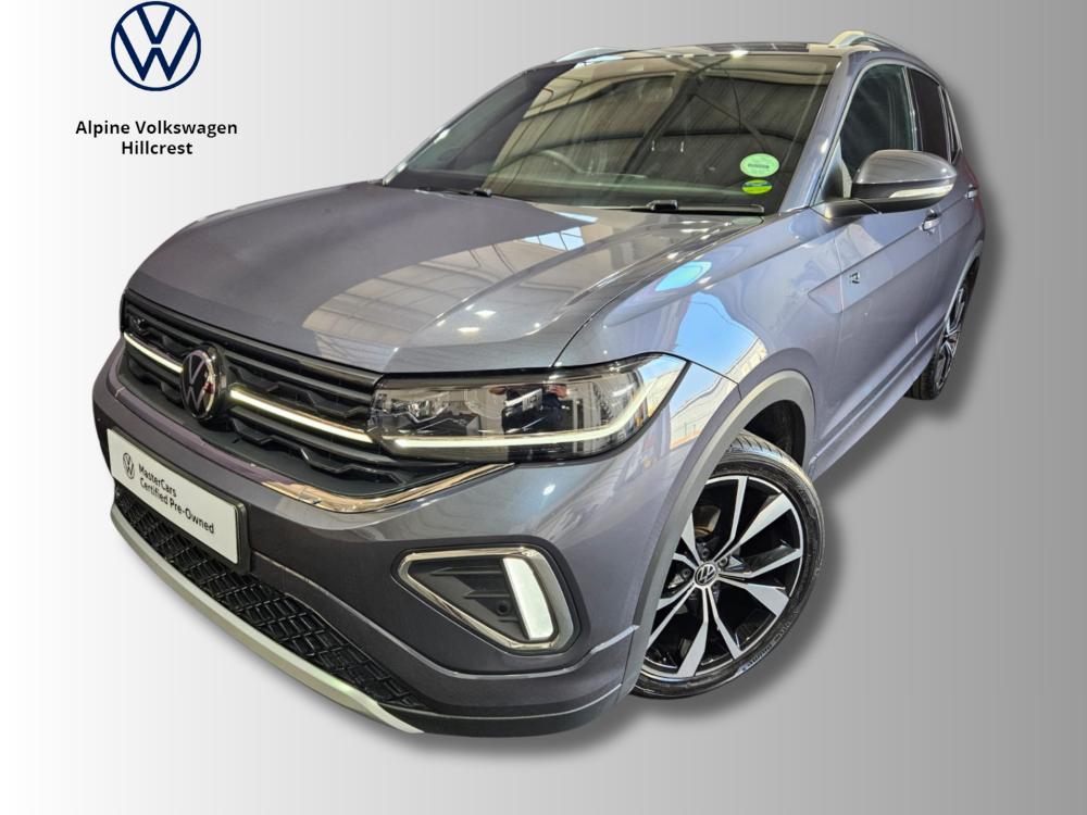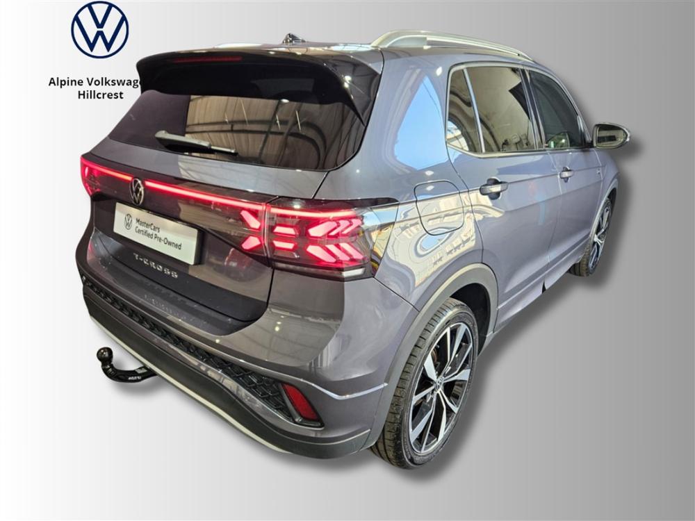 R474 900 R10 236 pmiRef: 326262/1 2025 VW T-Cross 1.0 TSI R-Line DSG – Bold Design, Intelligent Safety, Effortless Drive Drive the latest generation of the T-Cross in dynamic R-Line trim—where premium features, sporty styling, and advanced tech come standard. This model is powered by a refined 1.0L TSI turbocharged engine delivering 85 kW and 200 Nm, paired with a quick-shifting 7-speed DSG transmission. Fuel-efficient and smooth, it averages just 5.6 L/100 km, while offering confident performance for both city and highway driving. Equipped with standout extras including 18" Misano alloy wheels, removable trailer hitch, heated front seats, rear view camera, and keyless entry with push-start ignition. The intuitive Discover Media Navigation System keeps you connected and on track. The comprehensive Safety+ Package brings added peace of mind with Lane Keeping Assist, Front Assist with Autonomous Emergency Braking, Adaptive Cruise Control, and Pedestrian Monitoring. Covered by the balance of a 3-year/120,000 km warranty and 3-year/45,000 km service plan, this T-Cross offers modern SUV motoring with long-term value. Contact Alpine VW Hillcrest today to arrange a test drive. Experience the perfect blend of comfort, safety, and sophistication.