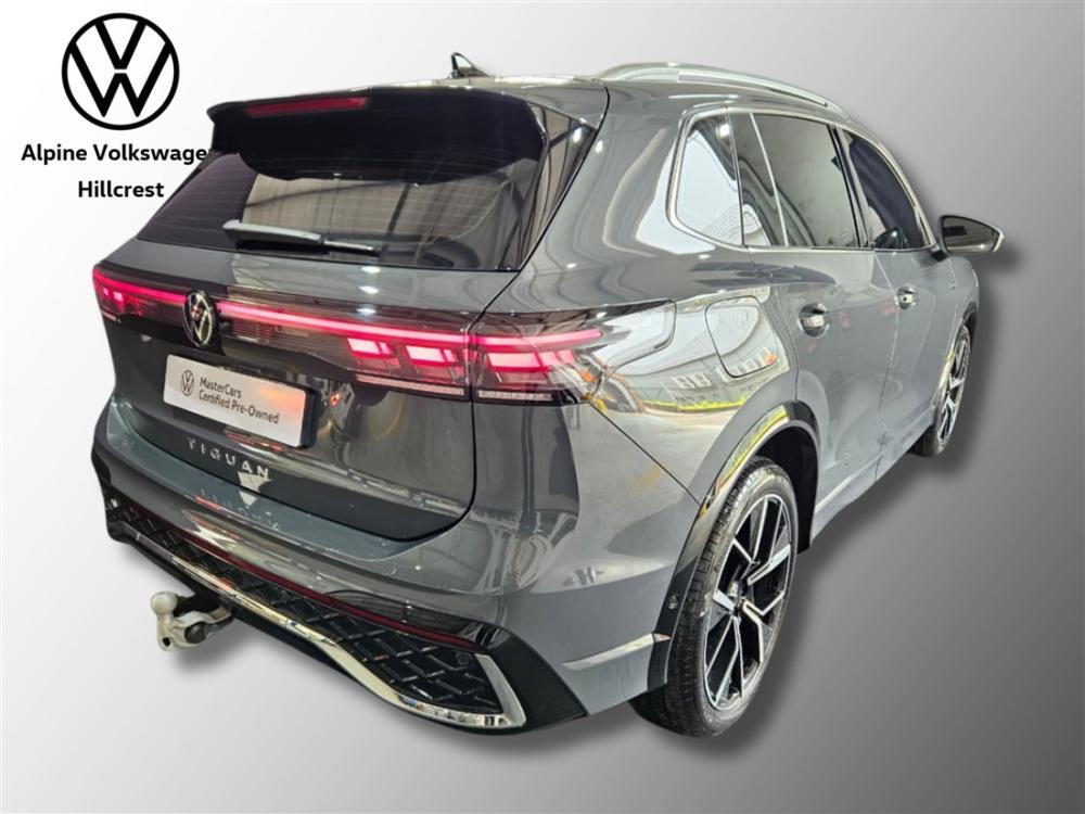 R799 990 R17 243 pmiRef: 328112/1 Discover the perfect blend of performance, comfort and premium features with this Volkswagen Tiguan 1.4 TSI R-Line. Powered by a responsive 1.4-litre turbocharged engine producing 110 kW and 250 Nm torque, paired with a smooth 7-speed DSG automatic transmission, this SUV delivers confident acceleration and refined everyday driving. Combined fuel consumption is around 7.6–7.7 L/100 km for excellent efficiency without compromising capability. This Tiguan comes with the balance of a 3-year / 120 000 km warranty and balance of a 5-year / 90 000 km service plan, giving you added peace of mind. Standout extras include: • Panoramic Sunroof – brighten every journey • Mechanically Swiveling Trailer Hitch – ready for towing tasks • Easy Open & Close Package – hands-free convenience • 20″ Leeds Alloy Wheels – bold road presence • R-Line Plus Package – enhanced style and specification Contact Alpine VW Hillcrest today to view and test drive this superb Tiguan — experience its refined ride, premium features and confident performance for yourself! Advertised price is subject to in house finance.