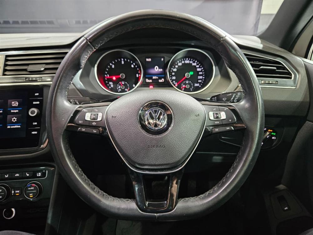 R414 990 R8 945 pmiRef: 331227/1 This Volkswagen Tiguan 2.0 TDI Comfortline 4Motion DSG delivers an excellent balance of comfort, capability and premium refinement. Immaculately presented and exceptionally well specified, it’s an ideal SUV for both everyday use and long-distance touring. Powered by a reliable 2.0-litre turbo-diesel engine producing 105 kW and 340 Nm, paired with a smooth 7-speed DSG automatic transmission and 4Motion all-wheel drive, this Tiguan offers confident performance, outstanding road holding and fuel efficiency of approximately 5.7 L/100 km. High-Value Extras Include: • Panoramic Sunroof • R-Line Exterior Styling • Vienna Leather Interior • LED Headlights with Dynamic Cornering Lights • Electric Tailgate • Folding Trailer Hitch • Keyless Locking & Starting • Park Assist with Rear View Camera • Wireless Phone Charging • Ambient Lighting Package • Luggage Compartment Lighting • Smoker’s Package Standard Comfortline Features: Enjoy dual-zone climate control, cruise control, touchscreen infotainment, multi-function steering wheel, electric windows and mirrors, plus comprehensive safety including multiple airbags, ABS, Electronic Stability Control and ISOFIX child seat anchors. A premium diesel SUV offering space, luxury and sure-footed performance. ???? Contact Alpine VW Hillcrest today to view and test drive – this Tiguan is ready to impress.