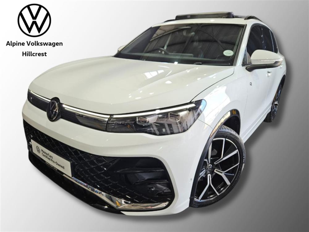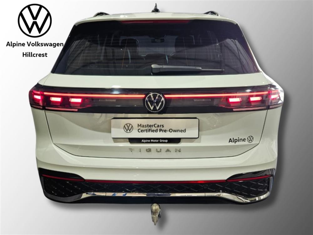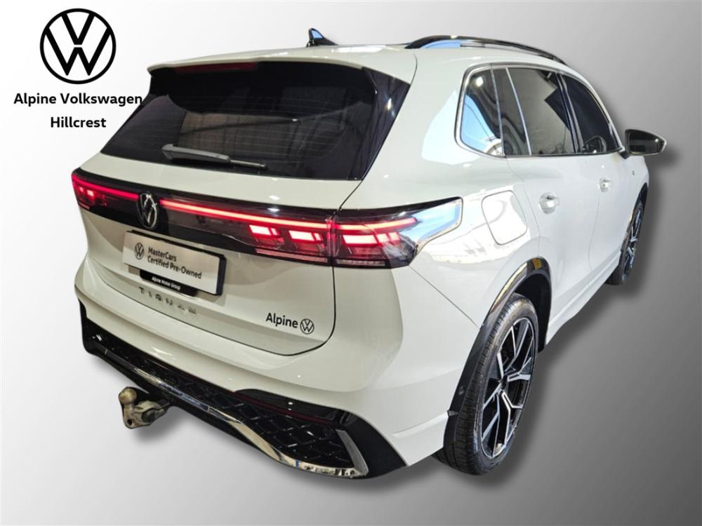 R699 990 R15 088 pmiExperience sporty sophistication and premium comfort with this Volkswagen Tiguan 1.4 TSI R-Line DSG. Combining dynamic performance with bold R-Line styling and exceptional practicality, the Tiguan is a versatile SUV designed for both everyday driving and long-distance comfort. Powered by a 1.4-litre turbocharged TSI engine producing 110 kW and 250 Nm of torque, paired with Volkswagen’s smooth 6-speed DSG automatic transmission, it delivers responsive performance while maintaining impressive fuel efficiency of around 6.5L/100km. The R-Line model offers a premium driving experience with features such as a digital cockpit, touchscreen infotainment system with Apple CarPlay and Android Auto, multifunction steering wheel, cruise control, climate control, electric windows and mirrors, LED headlights and front and rear park distance control. This vehicle is further enhanced with desirable extras including a panoramic sunroof, mechanically swiveling trailer hitch, Easy Open and Close package for convenient hands-free tailgate access, striking 20-inch Leeds alloy wheels, and the R-Line Plus Package which elevates both style and comfort. For added peace of mind, the vehicle includes the balance of Volkswagen’s 3 year / 120 000km warranty and the balance of a 5 year / 90 000km maintenance plan. Contact Alpine VW Hillcrest today to arrange a viewing and test drive. Advertised price is subject to in house finance.